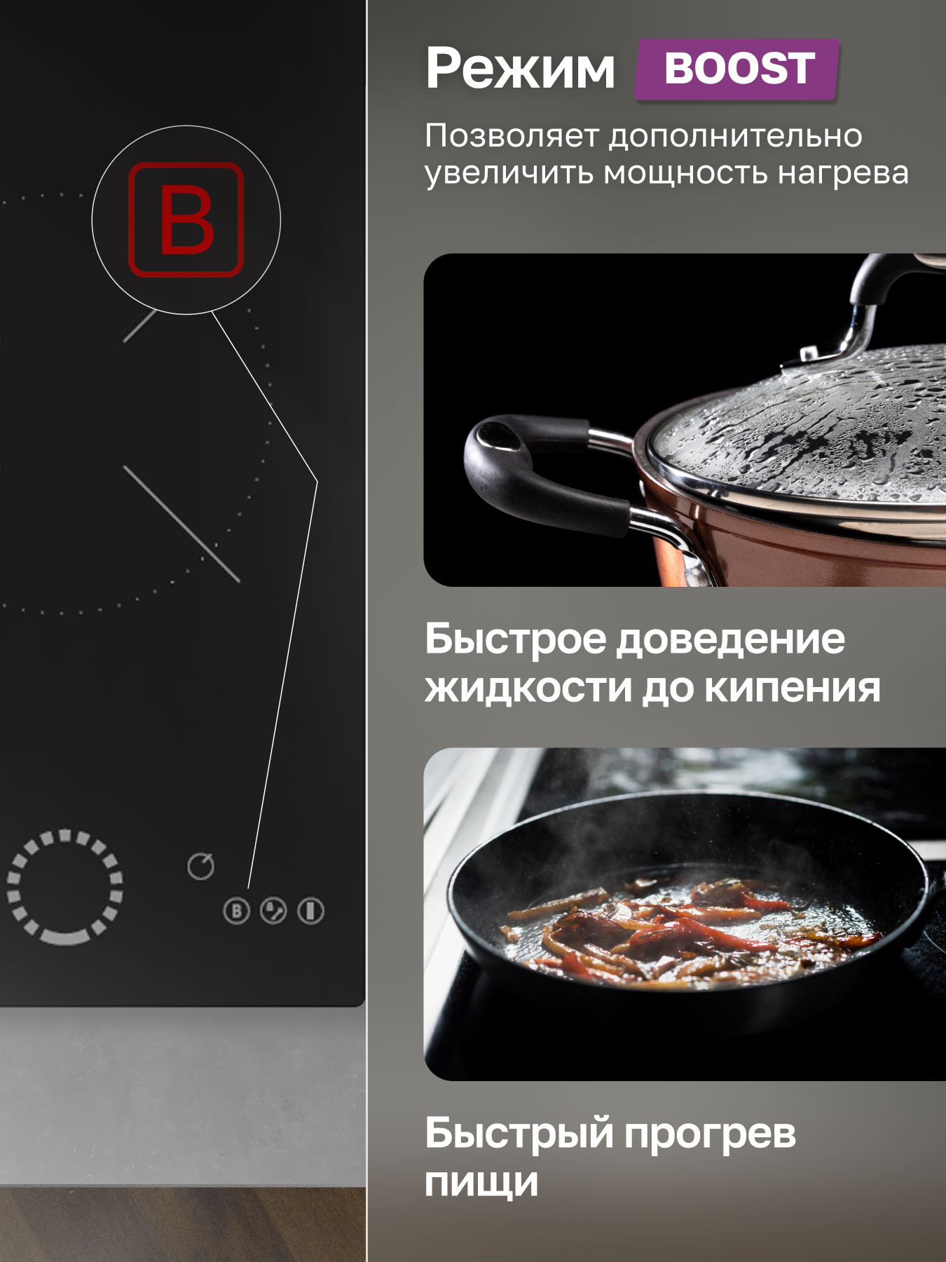 | Объединение двух комфорок в одну зону нагрева | Нет |