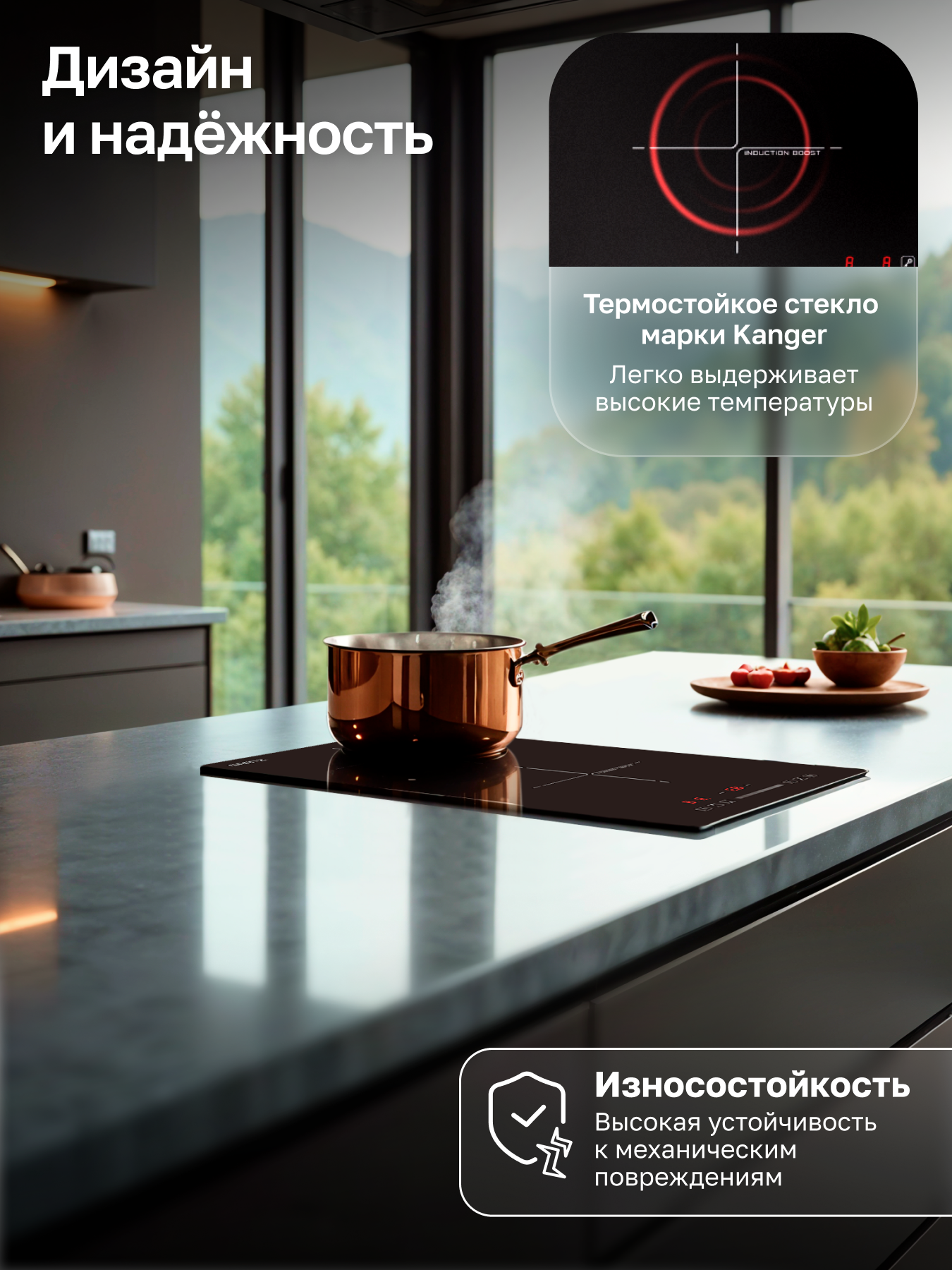Индукционная варочная панель 3 конфорки встраиваемая GARTZ HIS411B SenciCook, 45см, Boost, автоотлючение, стеклокерамика, черная