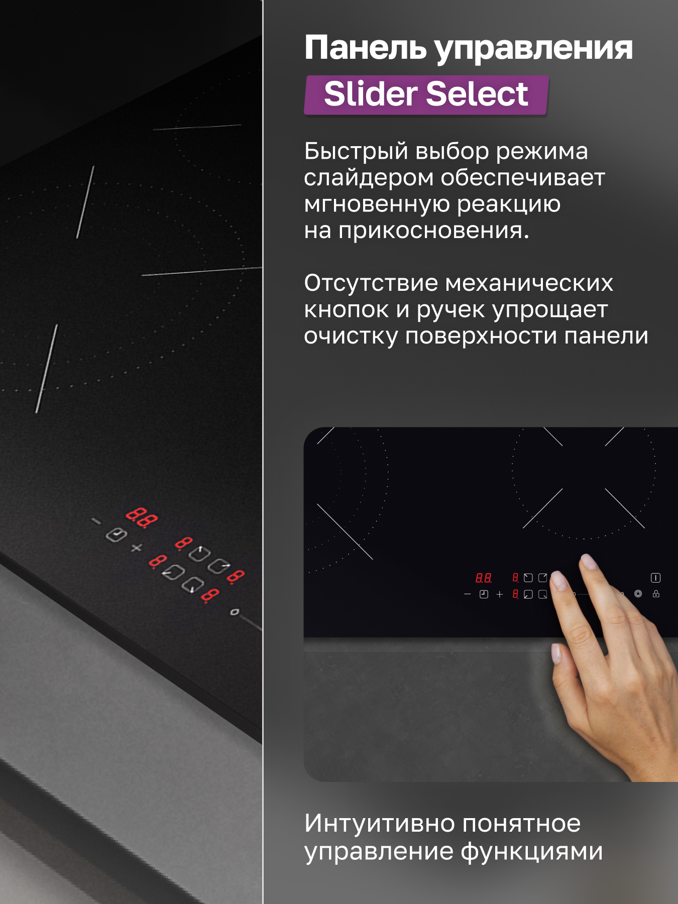 Индукционная варочная панель на 4 конфорки встраиваемая GARTZ HIT610B QuadroCook, ширина 60см, 9 уровней мощности, режим Boost, сенсорное управление, таймер, автоотключение, стеклокерамическая, черная