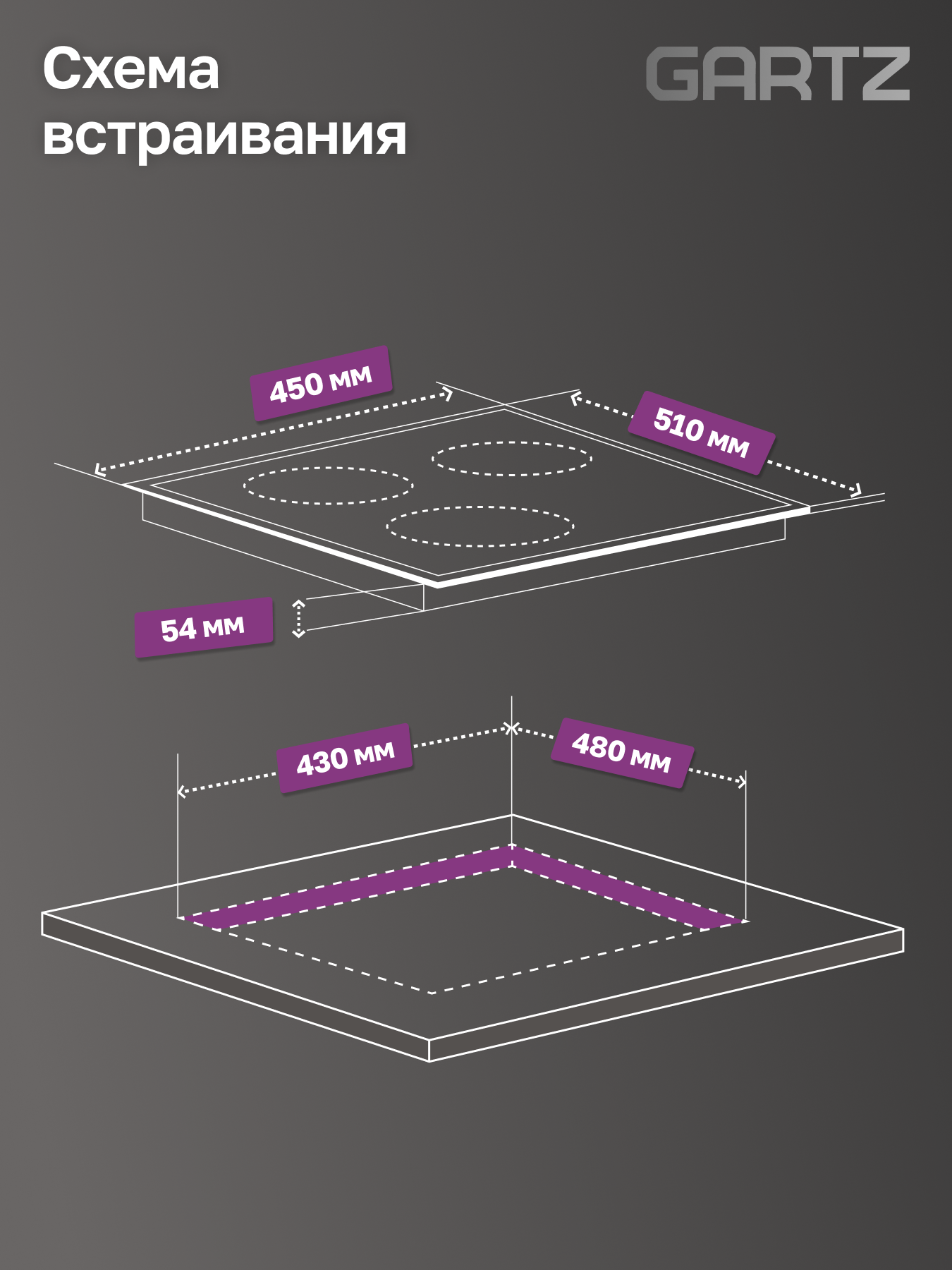 Индукционная варочная панель на 4 конфорки встраиваемая GARTZ HIS650B QuadroCook, 60cм, Boost, FlexZone, автоотлючение, стеклокерамика, черная
