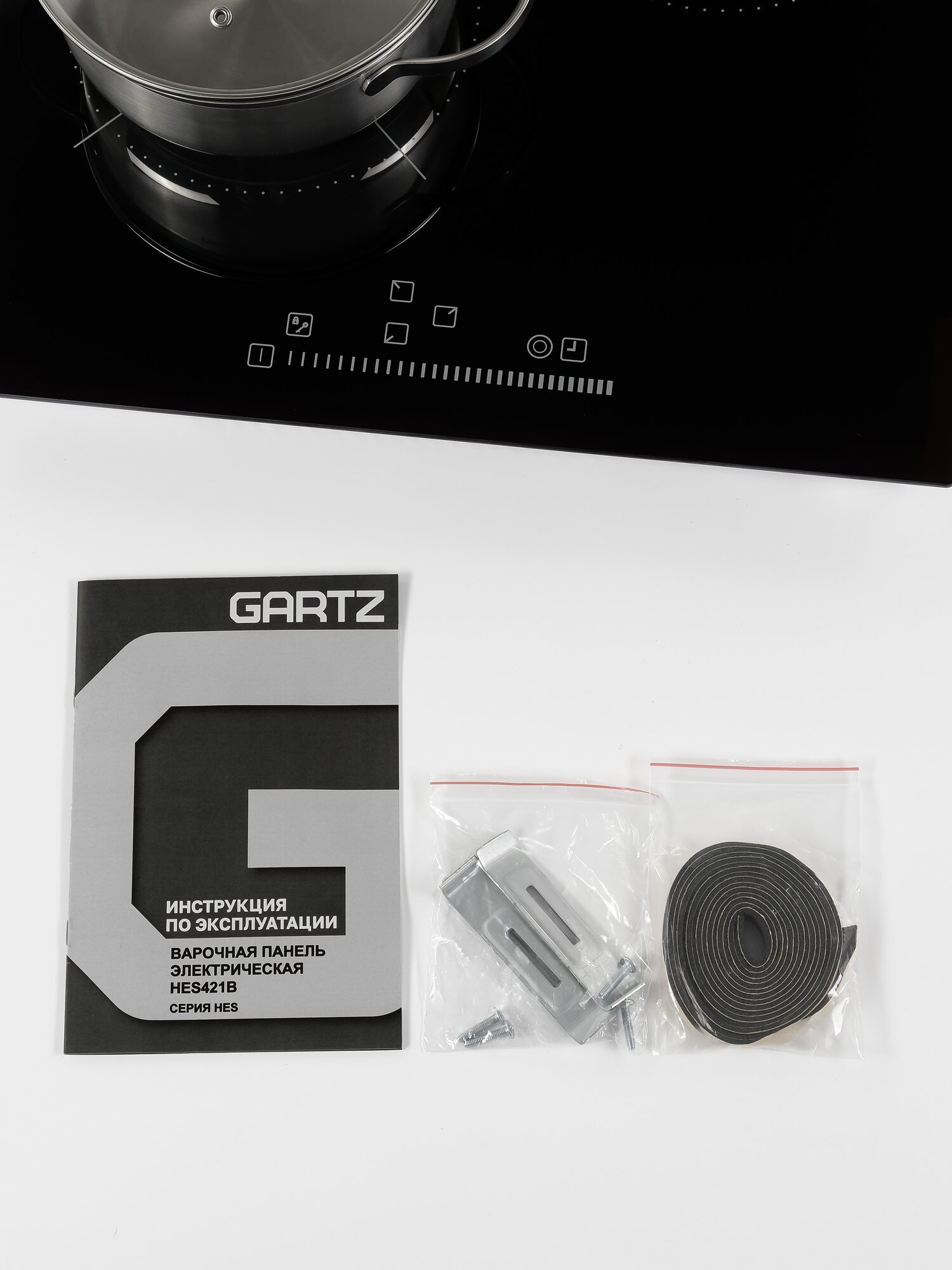 Варочная панель электрическая 3-х конфорочная встраиваемая GARTZ HES411B SenciCook, встраиваемая, 45см, стеклокерамика, черная