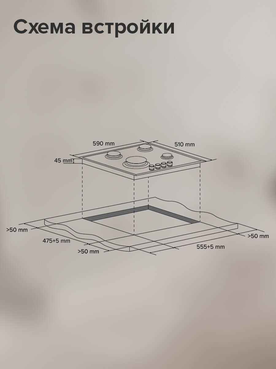 | Глубина для встраивания | 47.5 см |