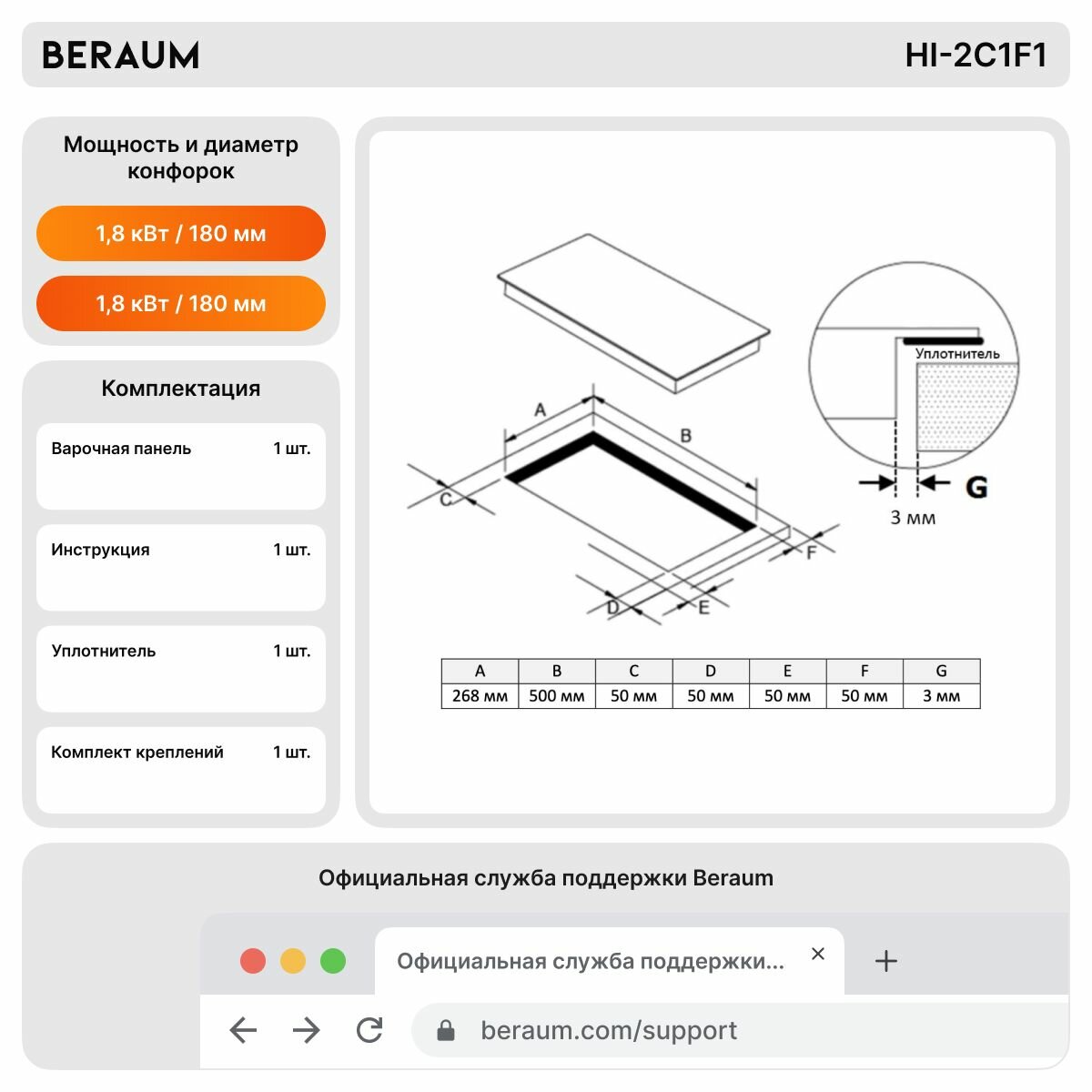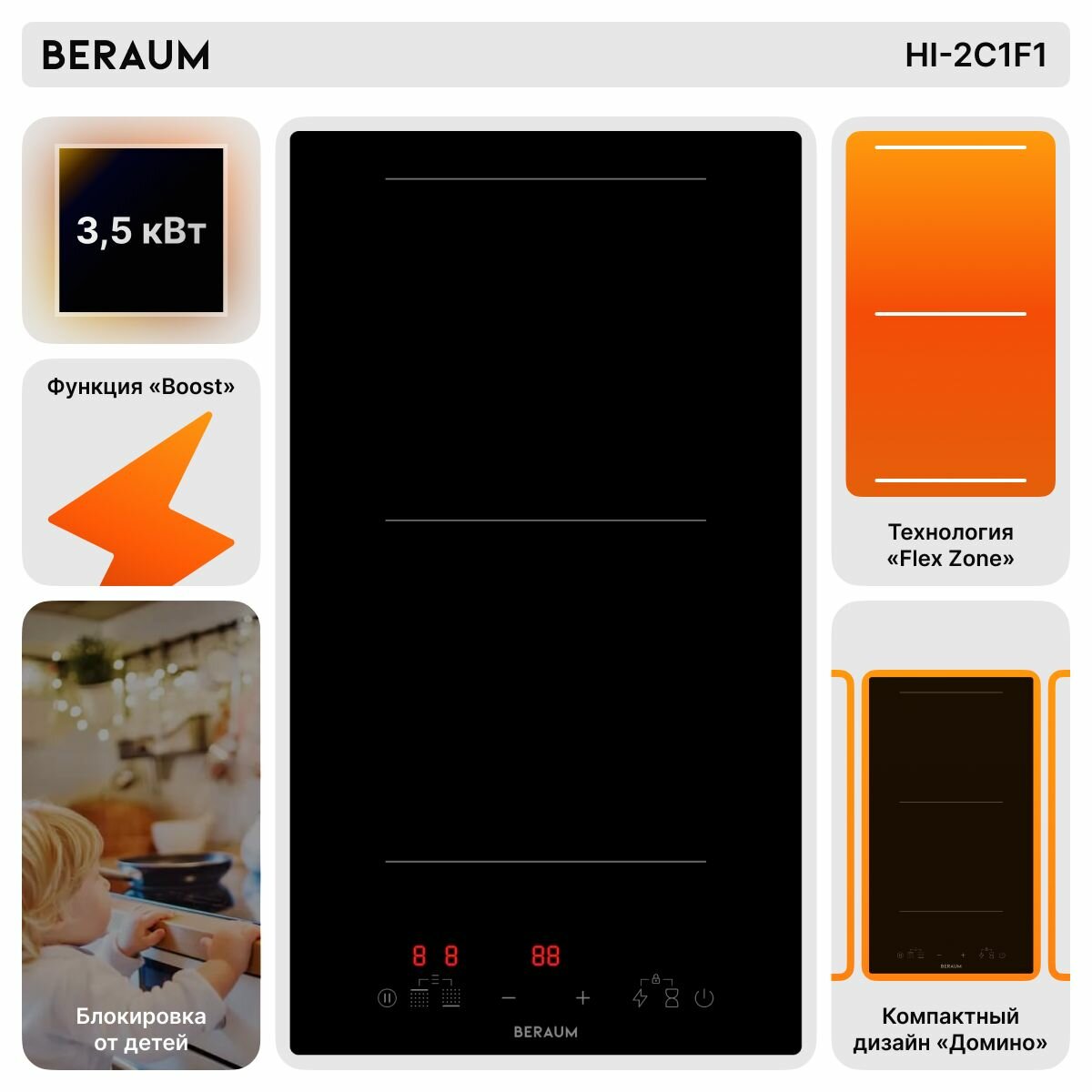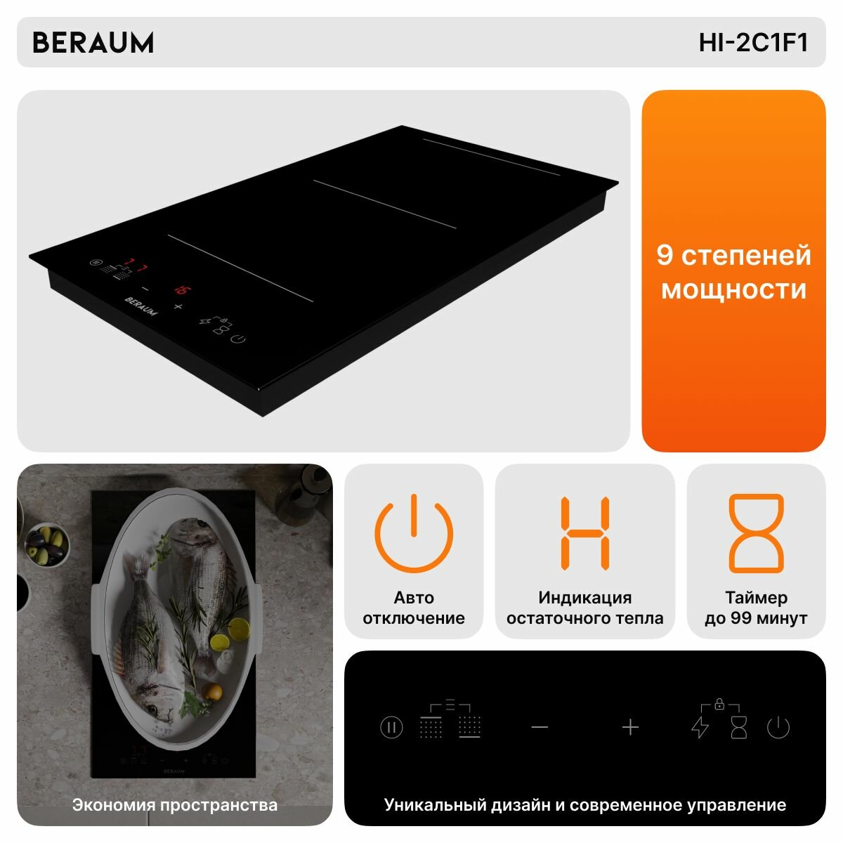 Индукционная варочная панель Beraum HI-2C1F1 интересное: