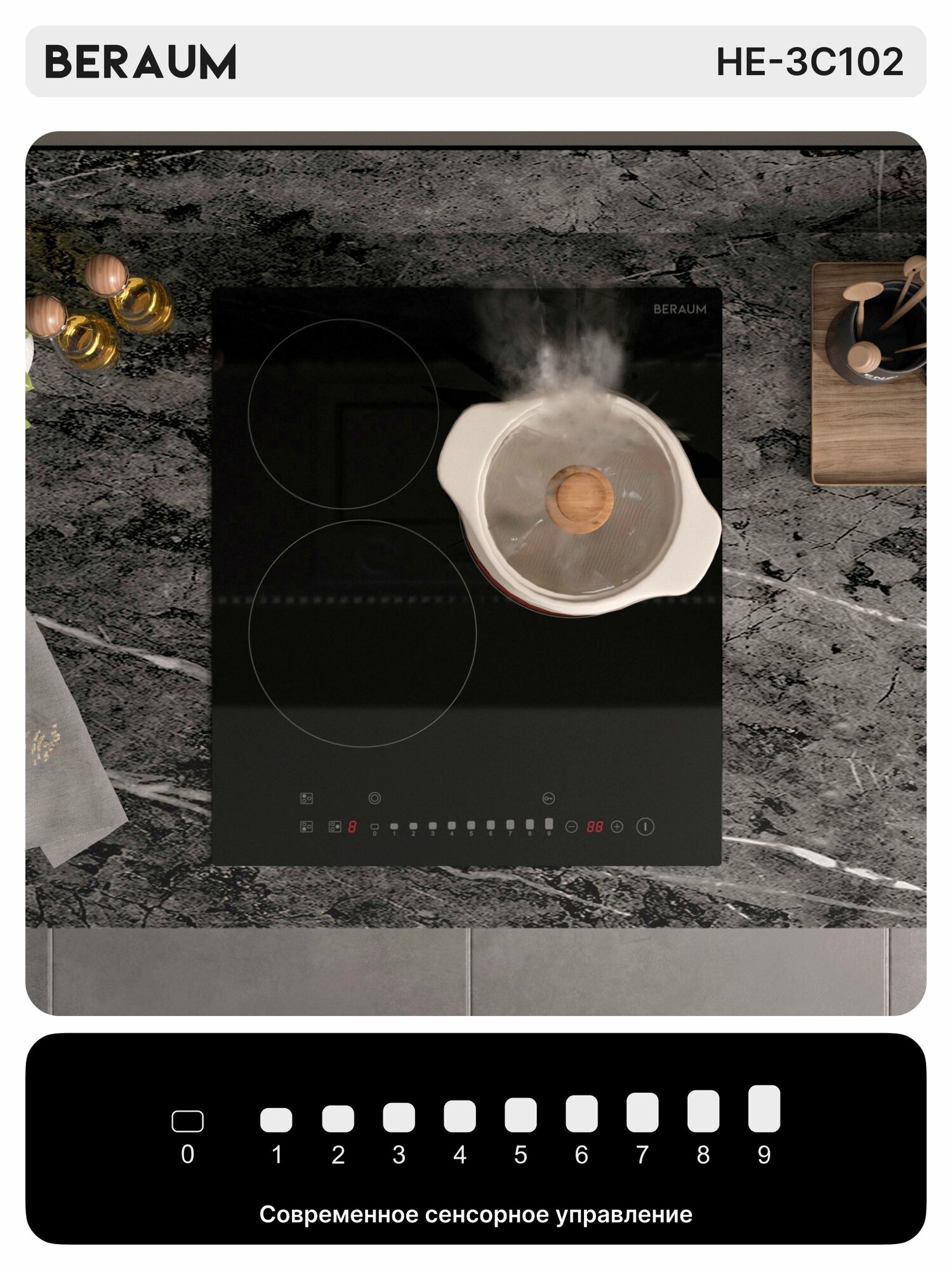 Электрическая варочная панель HE-3C102, 3 конфорки, 5000 Вт, двухконтурная зона нагрева, черный интересное: