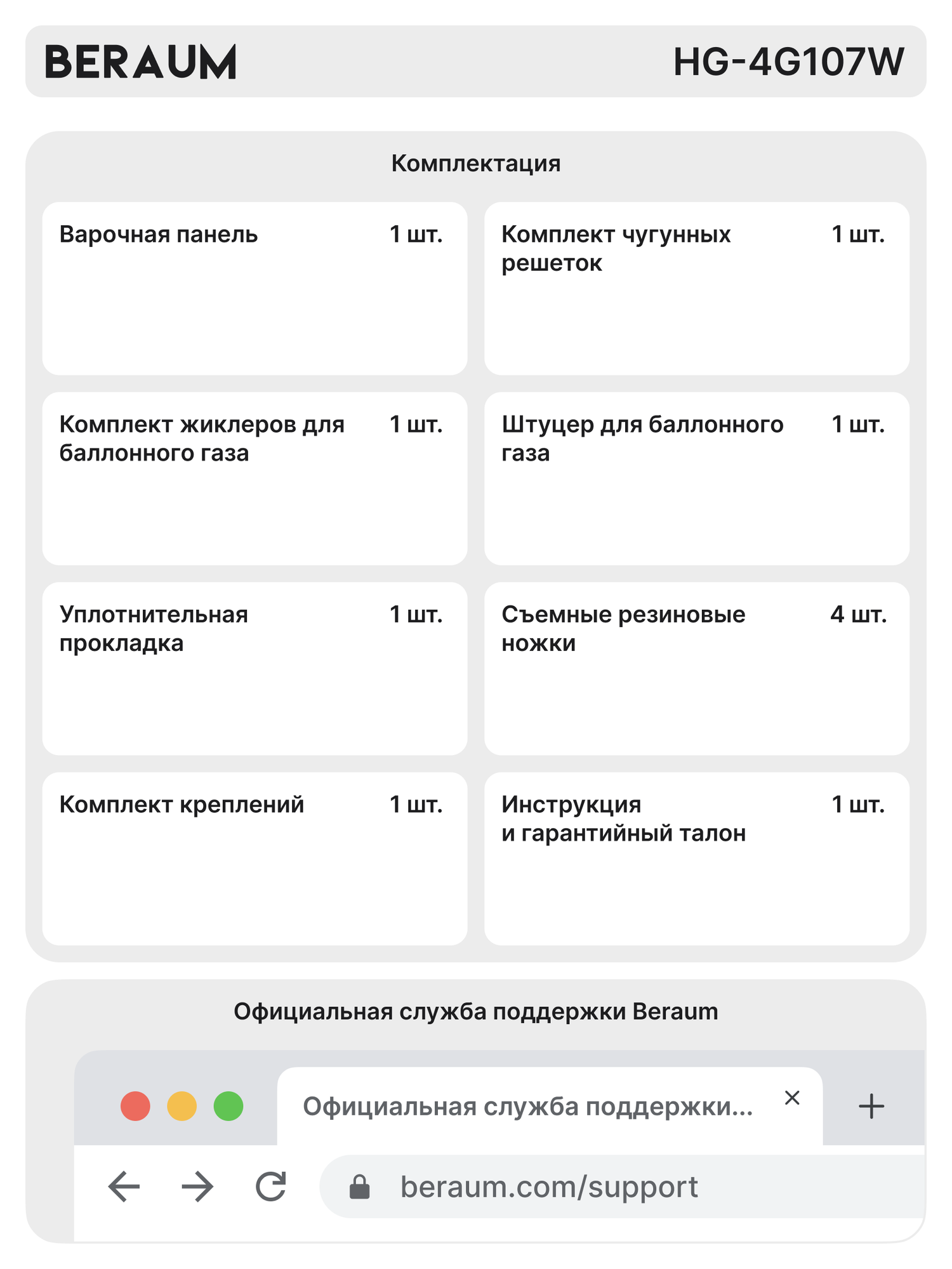 Газовая варочная панель Beraum HG-4G107W, 4 конфорки, газ-контроль, белый интересное: