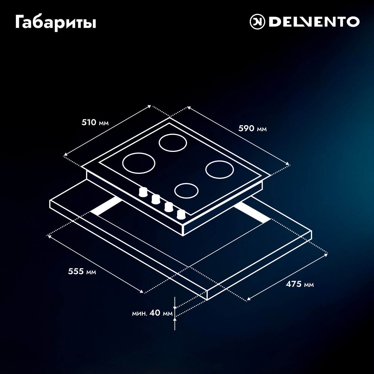 Встраиваемая газовая варочная панель DELVENTO V30V20B100, черного цвета