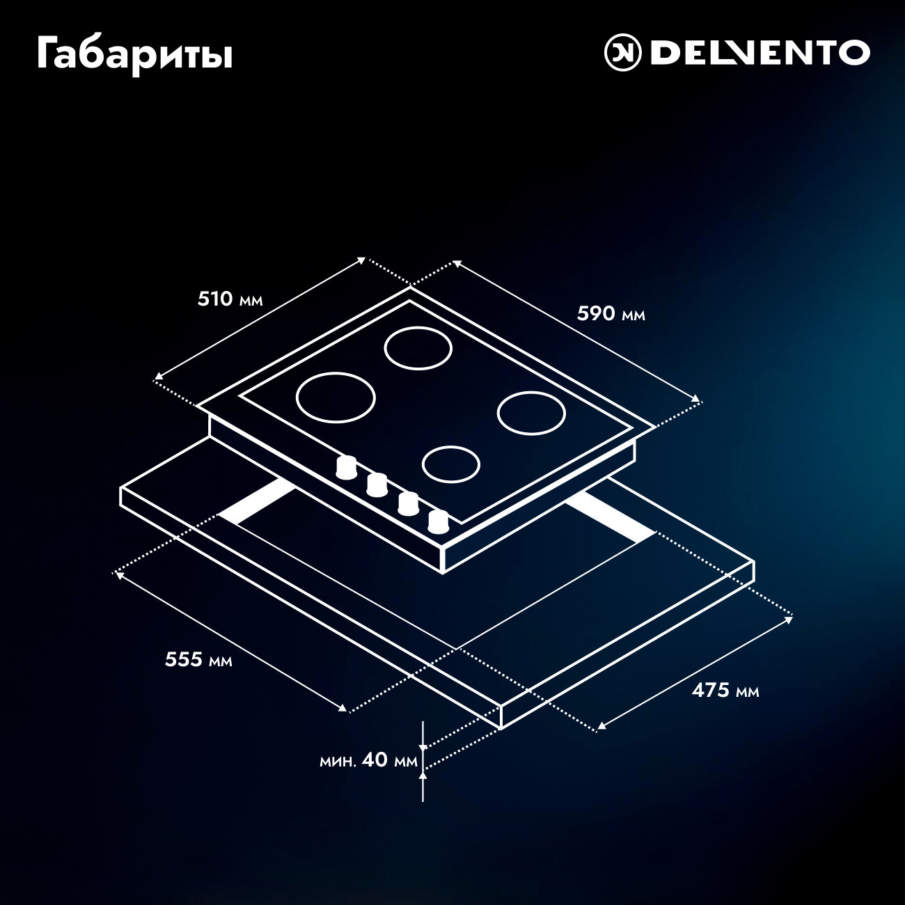 Встраиваемая газовая варочная панель DELVENTO V30V20B100, черного цвета