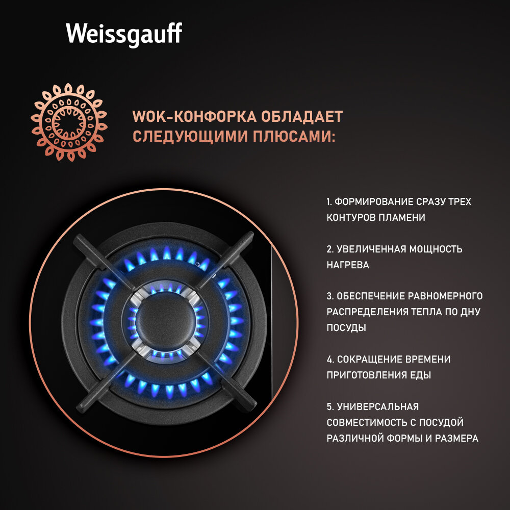 Варочная панель Weissgauff HGG 451 BGh Nano Glass wok-конфорка, 45 см ширина, Рукоятки Hi-Tech интересное:
