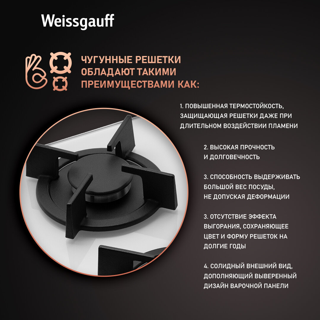 Варочная панель Weissgauff HGG 451 WGh Nano Glass wok-конфорка, Рукоятки Hi-Tech интересное: