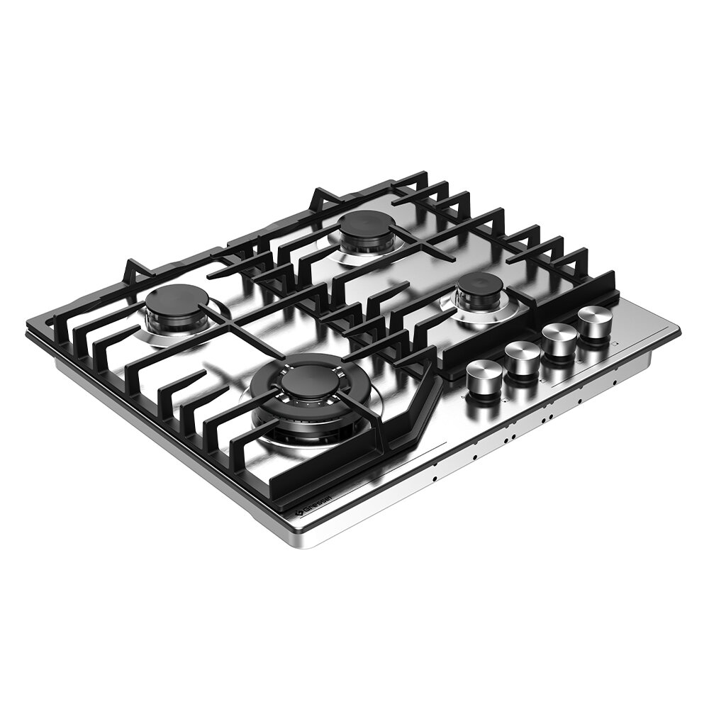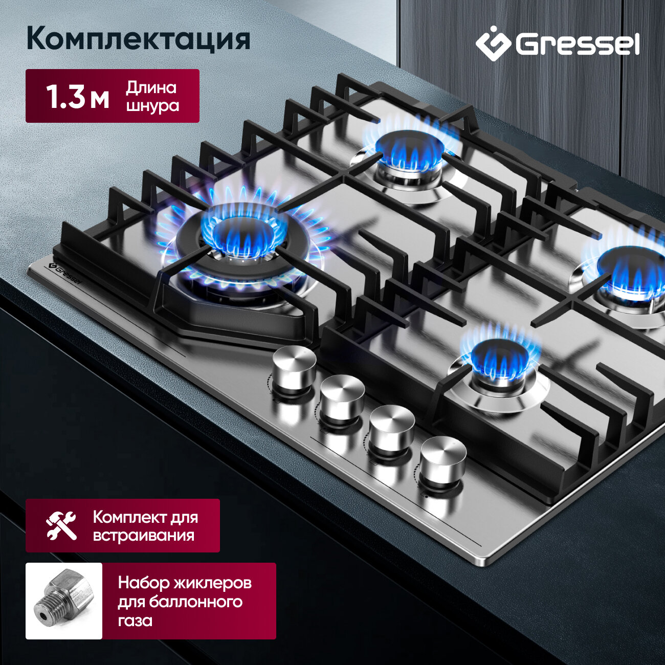 Газовая варочная панель GRESSEL U60H41S001 60 см, закаленное стекло, WOK-конфорка, электроподжиг, газ-контроль