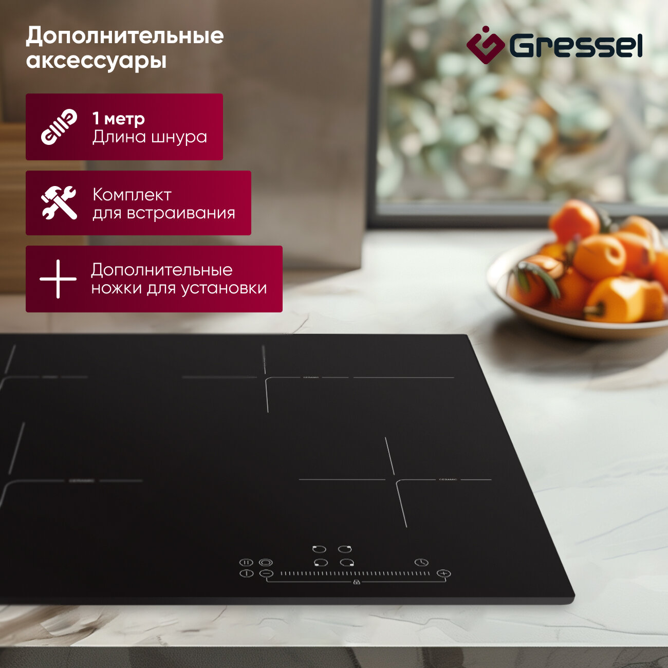 Встраиваемая индукционная варочная панель GRESSEL U60I74S000, 60 см, 7000Вт, Touch control