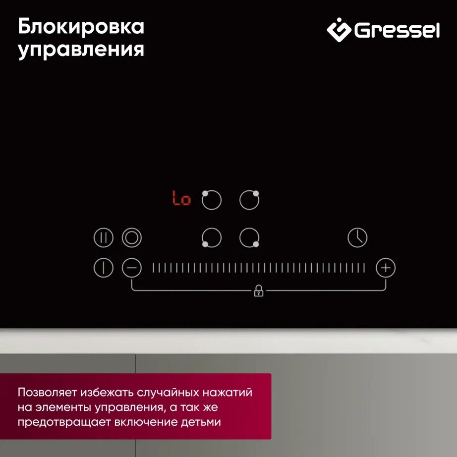 Встраиваемая индукционная варочная панель GRESSEL U60I74S001, 60 см, 7000Вт, Slider control