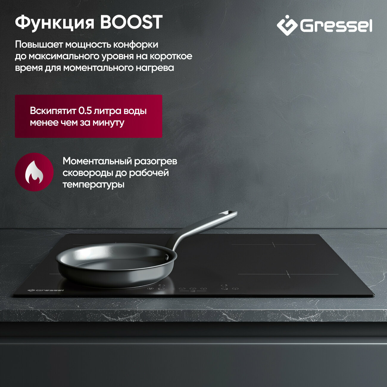 СохранитьВстраиваемая индукционная варочная панель GRESSEL U60I74S000, 60 см, 7000Вт, Touch control интересное: