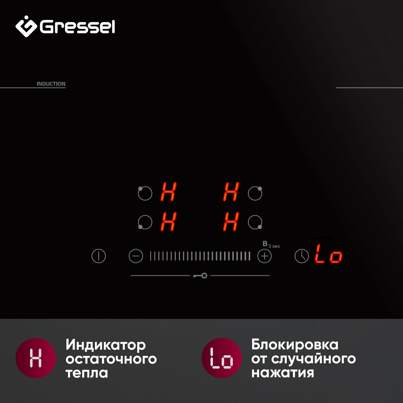 Встраиваемая индукционная варочная панель GRESSEL U60I74S000, 60 см, 7000Вт, Touch control