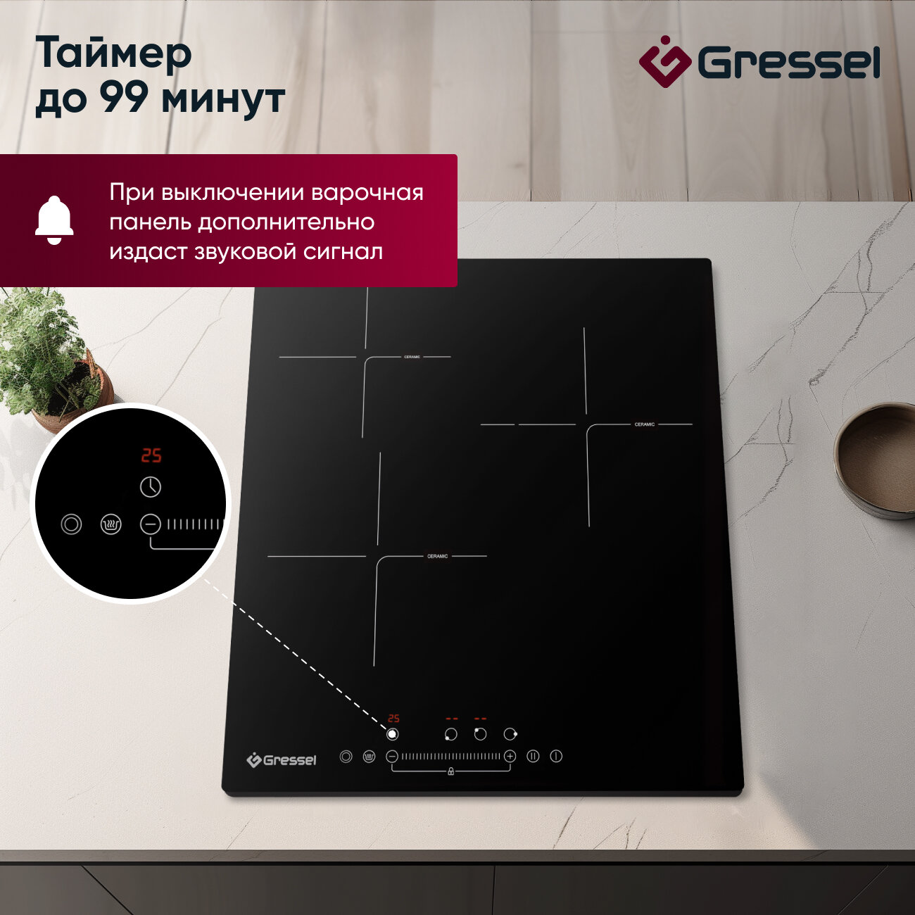 Встраиваемая индукционная варочная панель GRESSEL U30I72S001, 30 см, 3500Вт, Slider control