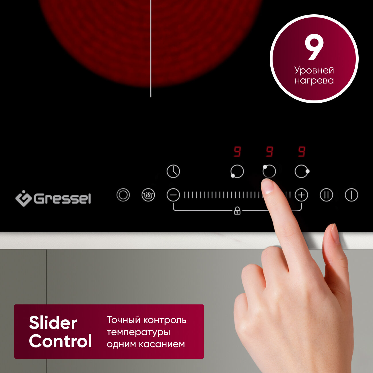 Встраиваемая электрическая варочная панель Gressel U60D14S100, 60 см, 6000Вт, Slider control