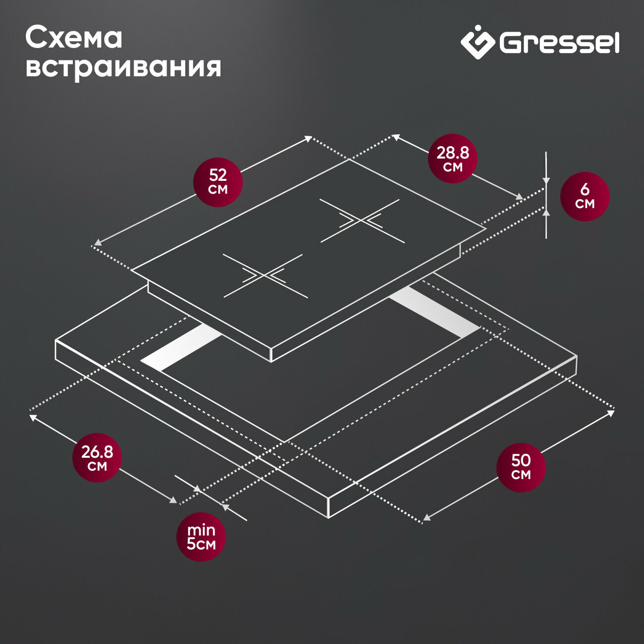 Встраиваемая индукционная варочная панель GRESSEL U45I73S000, 45 см, 5500Вт, Touch control