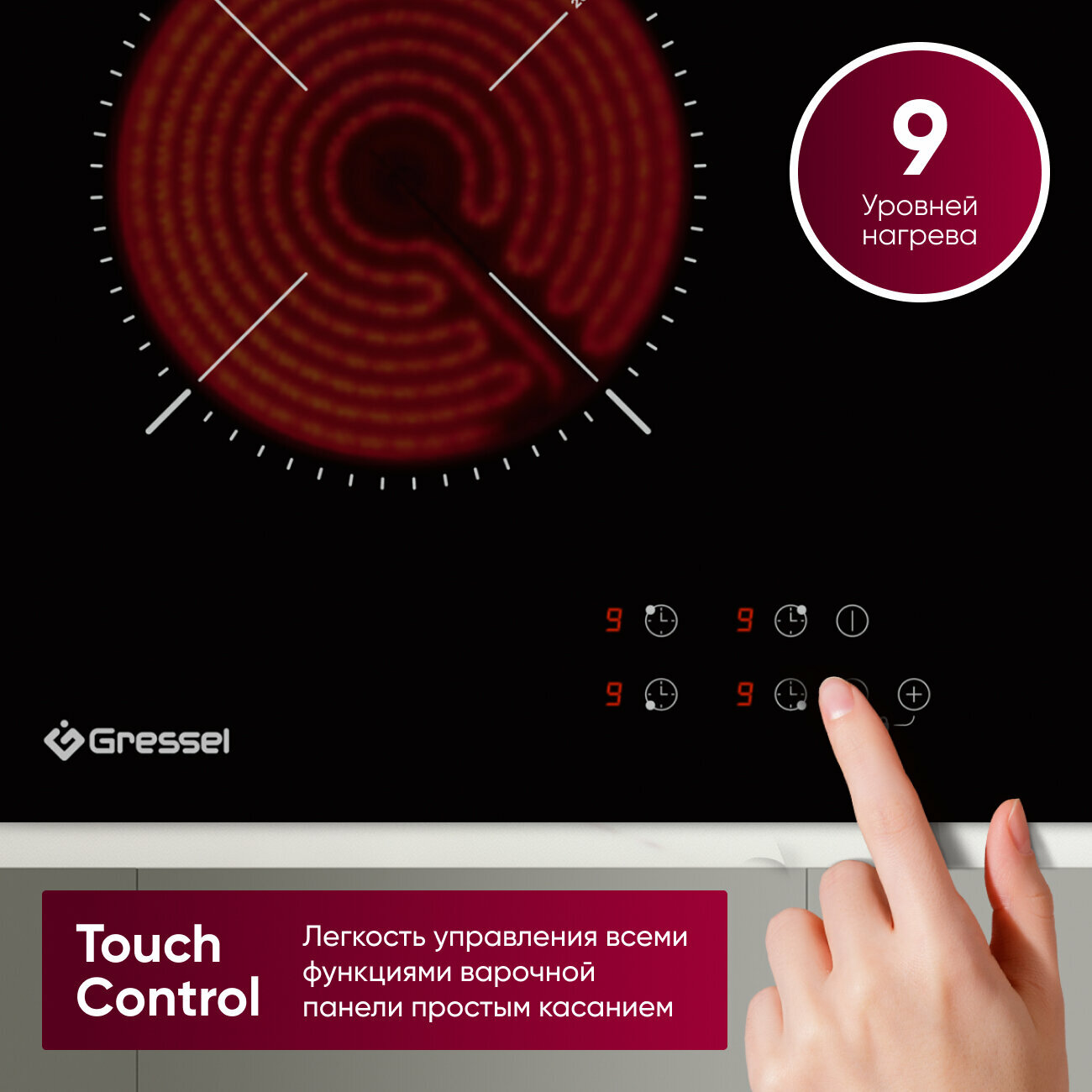 Купить Встраиваемая электрическая варочная панель Gressel U60D14S100, 60 см, 6000Вт, Slider control