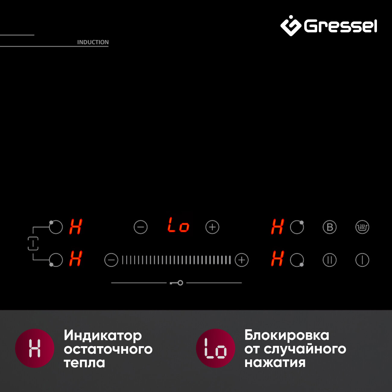 Встраиваемая индукционная варочная панель GRESSEL U30I72S001, 30 см, 3500Вт, Slider control