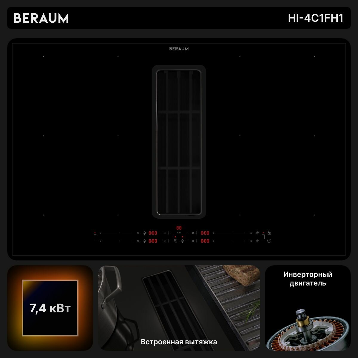 Индукционная варочная панель c вытяжкой Beraum HI-4C1FH1, 4 конфорки, Flex Zone, инвертором и технологией непрерывного нагрева интересное: