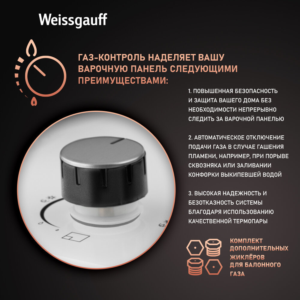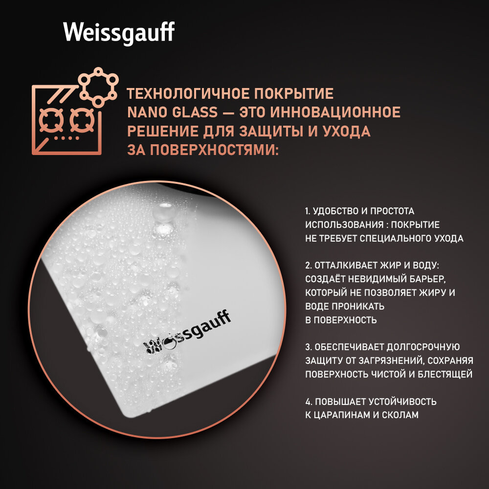 Купить Варочная панель Weissgauff HGG 640 WG Nano Glass Ширина 60 см, Стекло легкой очистки NanoGlass
