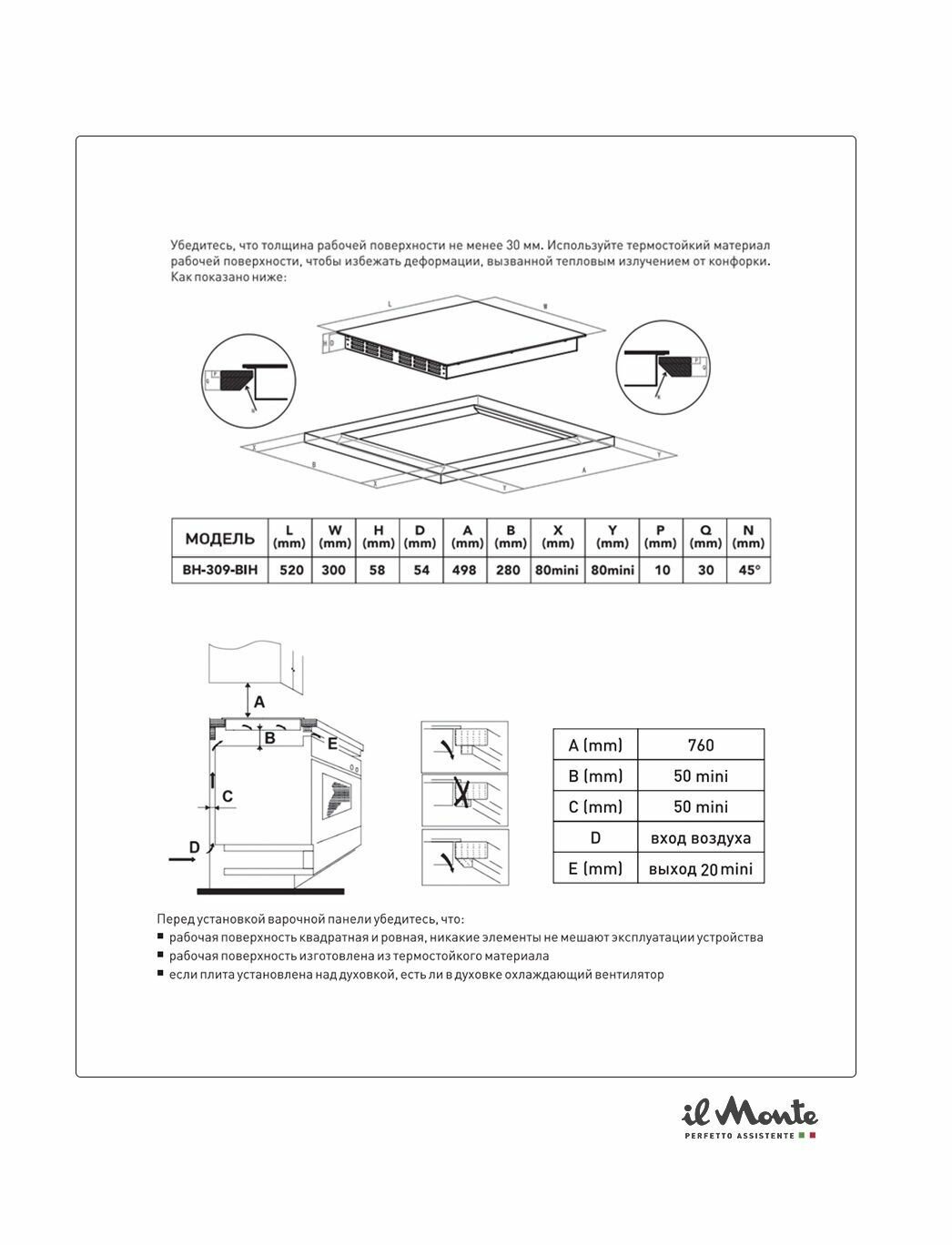 | Размеры, мм | Размеры варочной поверхности (В х Ш х Г), мм: 58 х 300 х 520; |