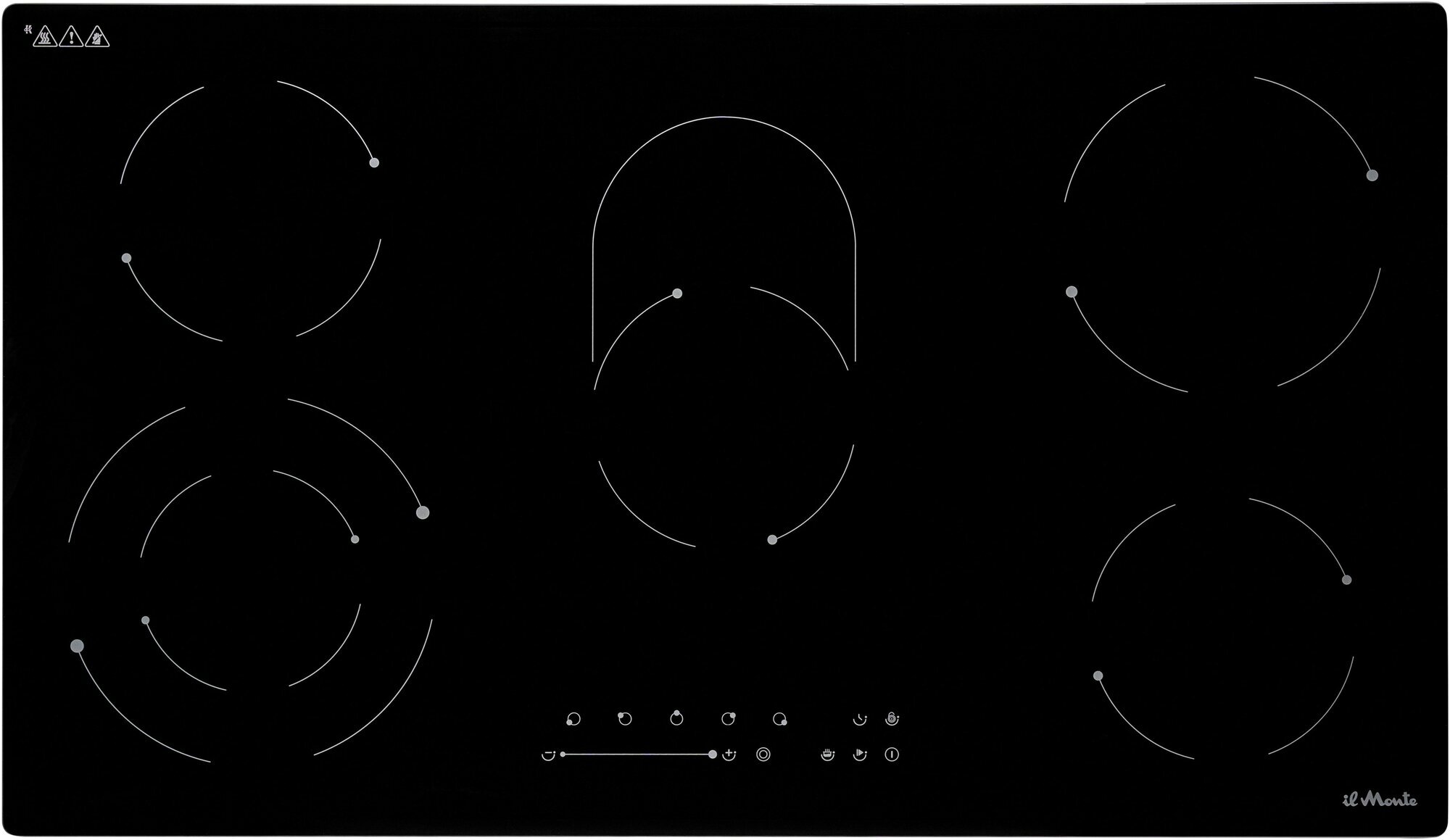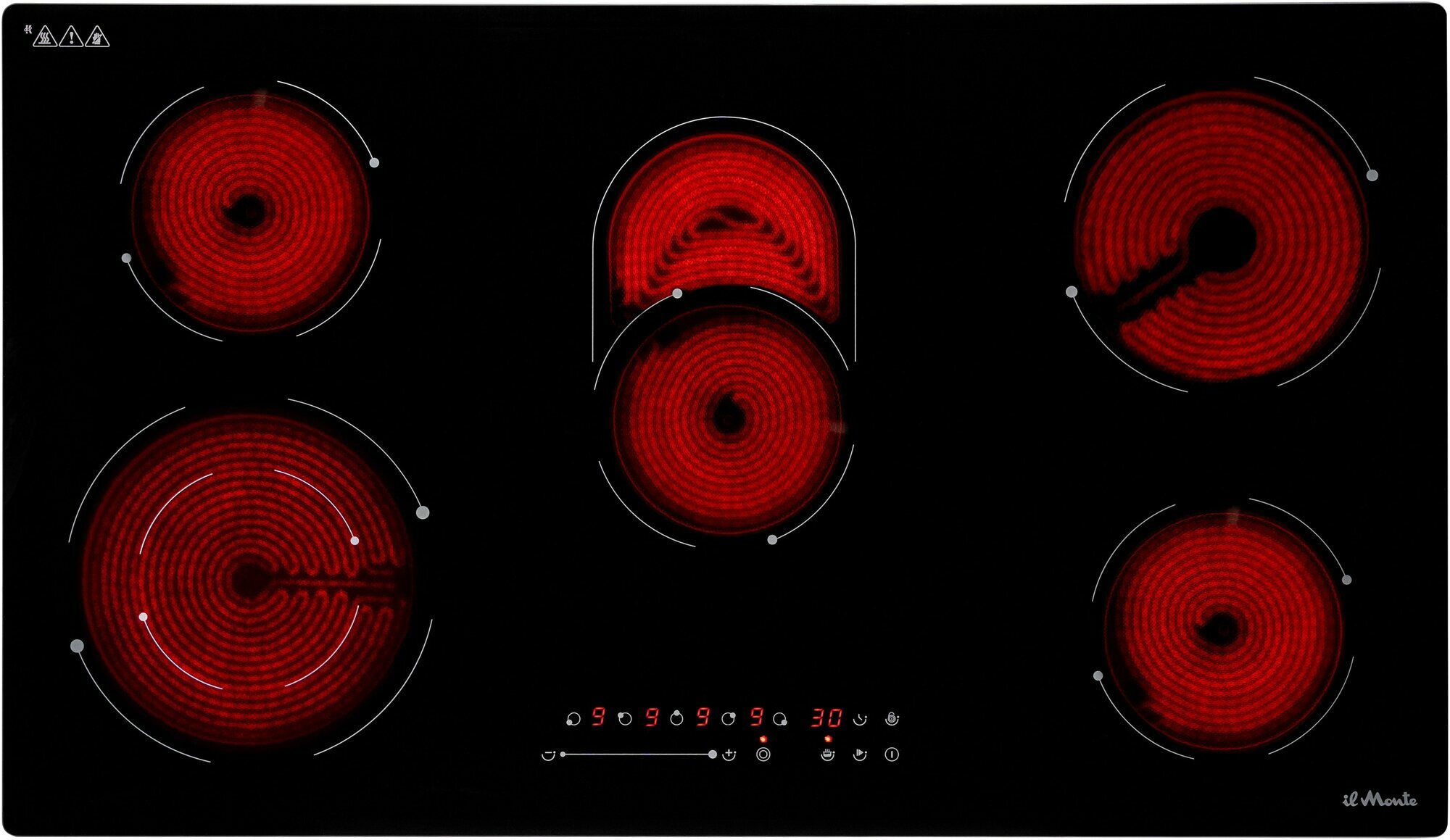 Купить Варочная панель электрическая, 90 см, 5 конфорок, 8400 Вт, Расширение конфорок, Автоотключение по таймеру