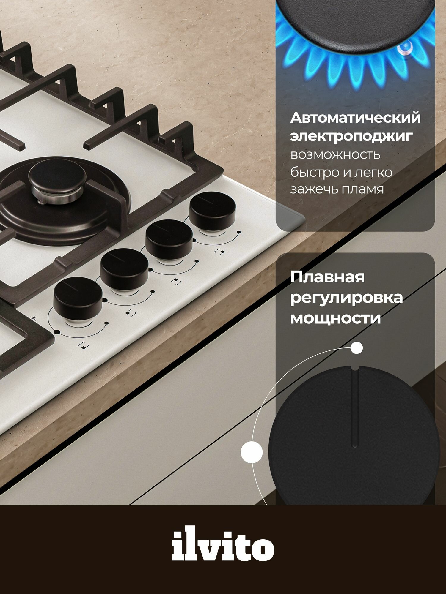 СохранитьГазовая варочная панель ILVITO IPG FABIANA 6GW IM, 60 см, серебристая, WOK-конфорка, автоматический розжиг интересное: