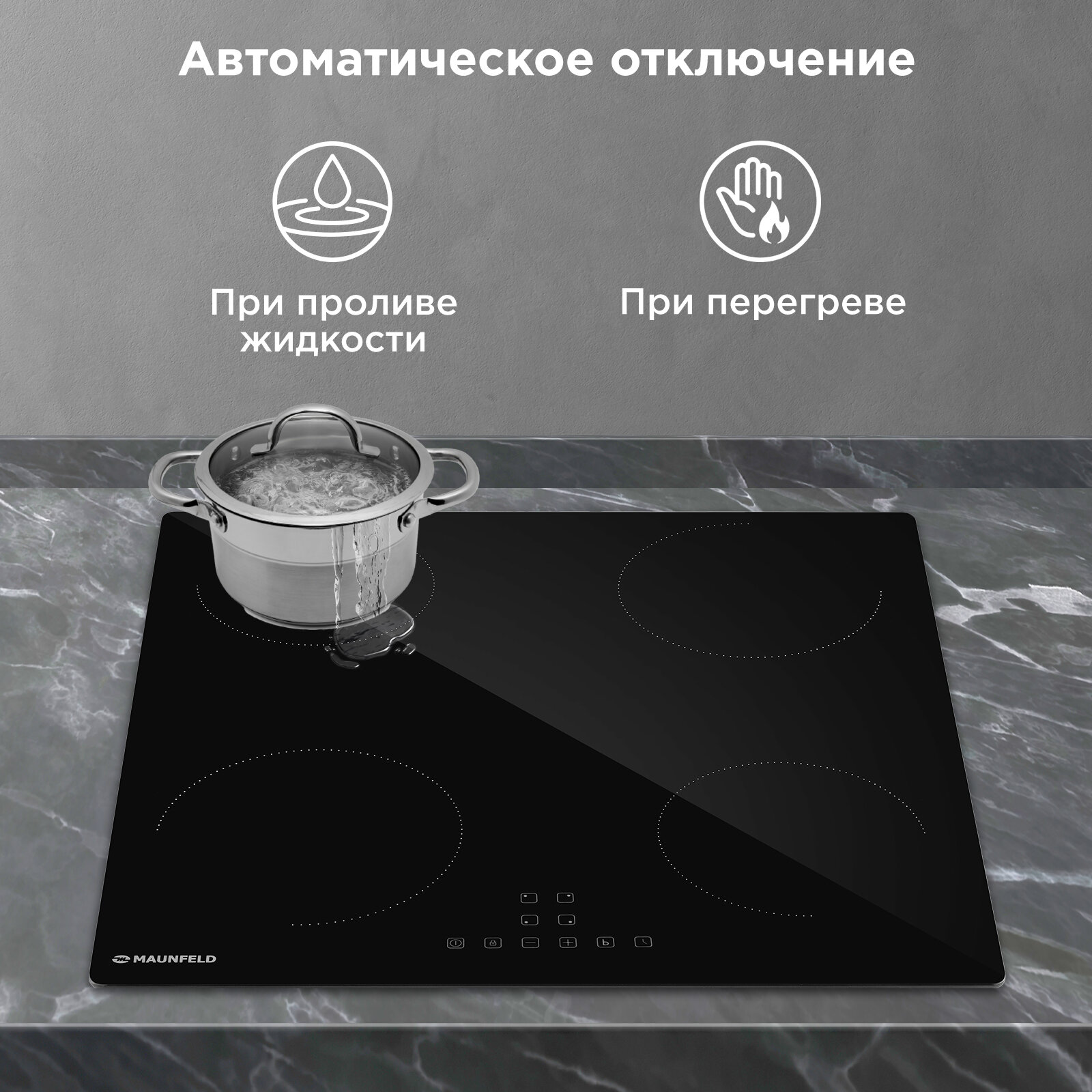 Индукционная варочная панель MAUNFELD AVI594BK, стеклокерамическая черная, 4 конфорки, 7,2 кВт интересное: