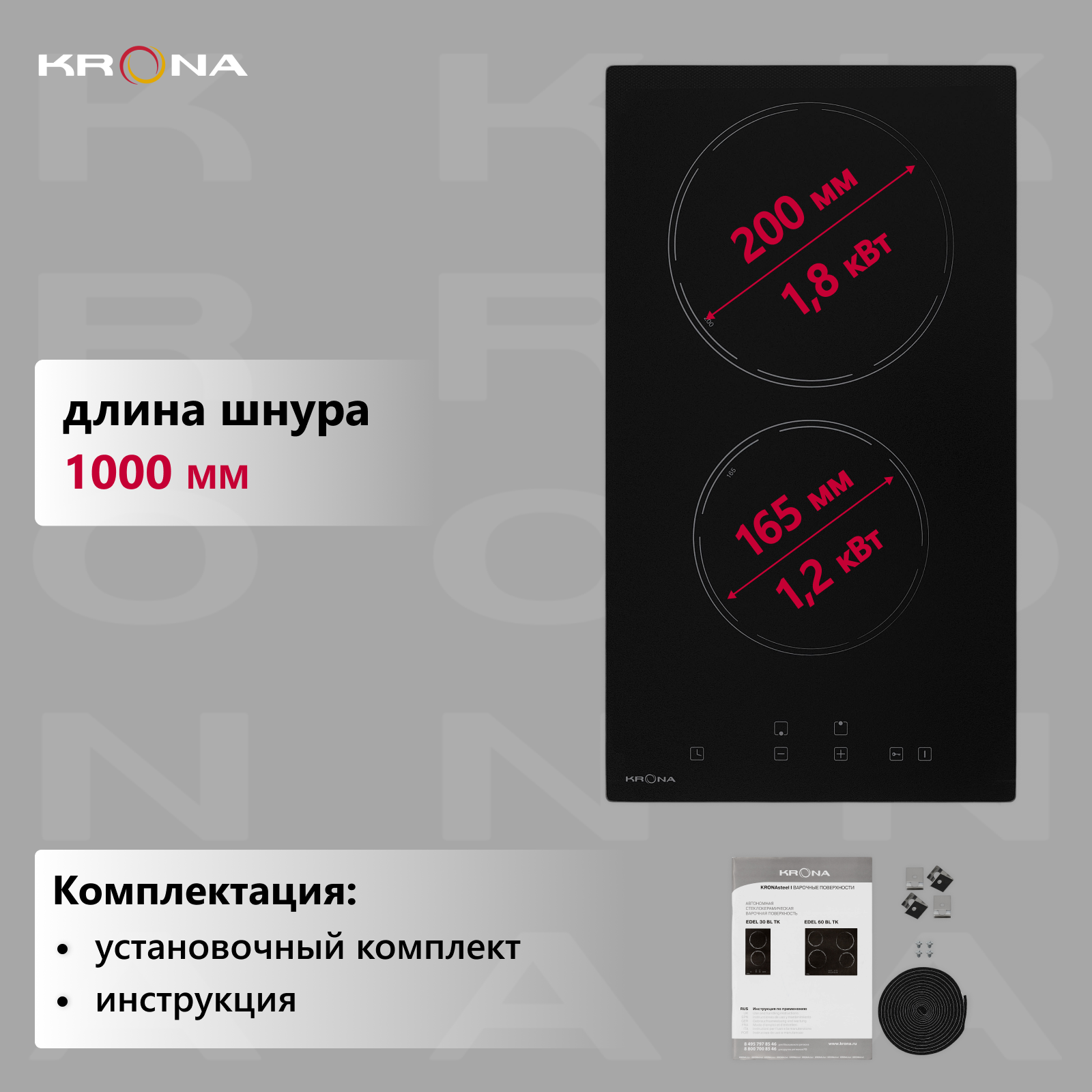 Электрическая варочная панель 30 см KRONA EDEL 30 BL TK интересное:
