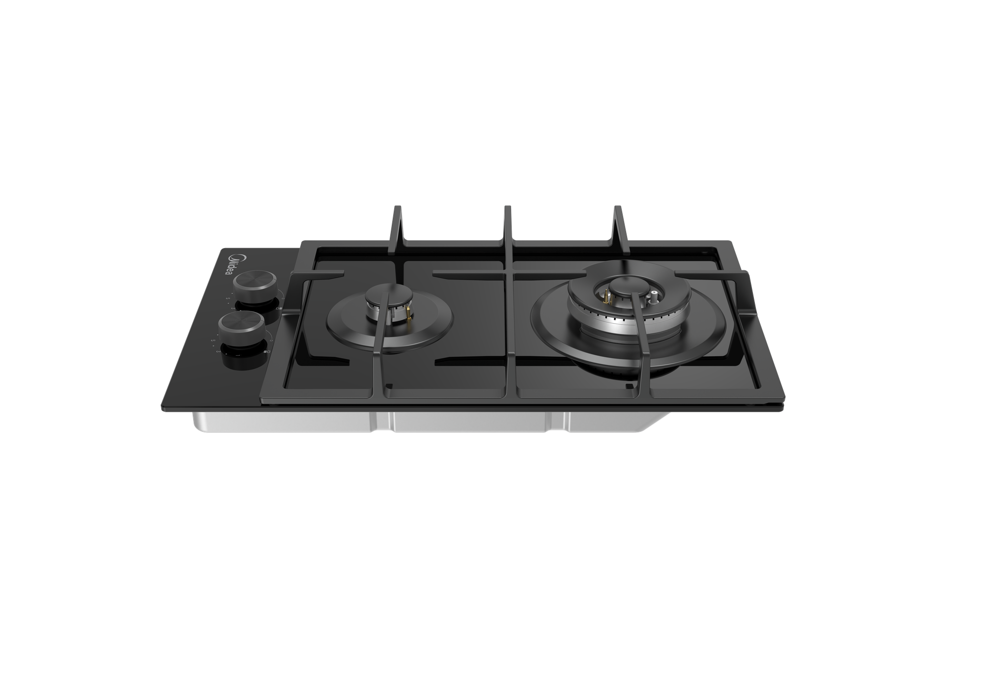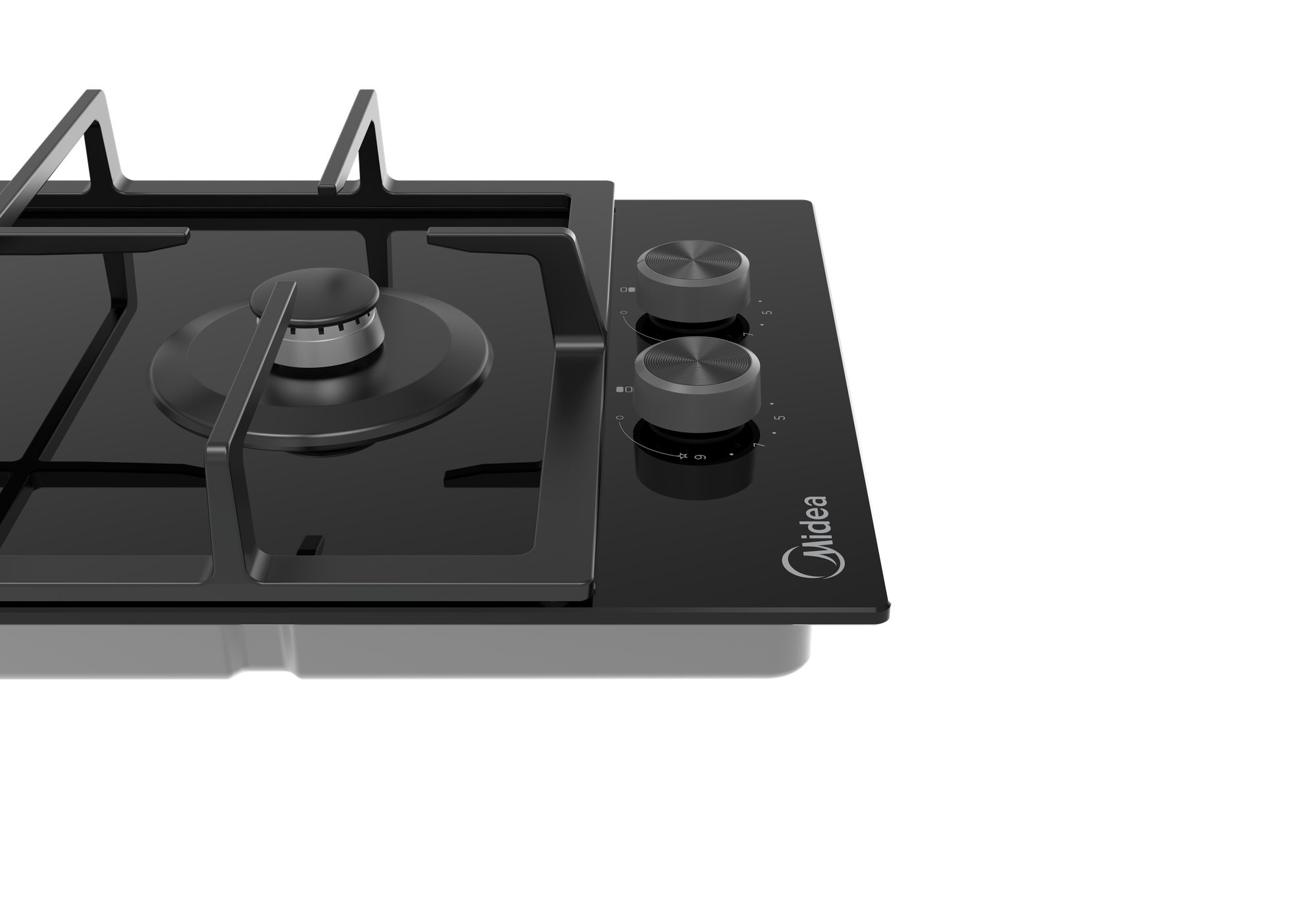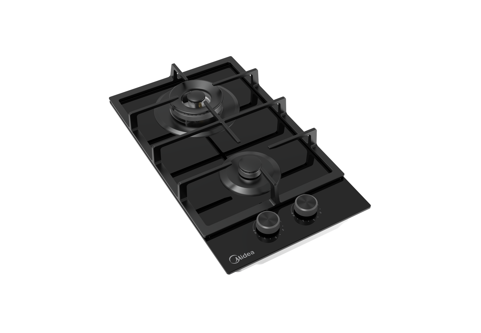 Купить Варочная газовая панель Midea MG3270TGB, Hi-Tech, компактная, черная, 2 конфорки, WOK, чугунные решётки.