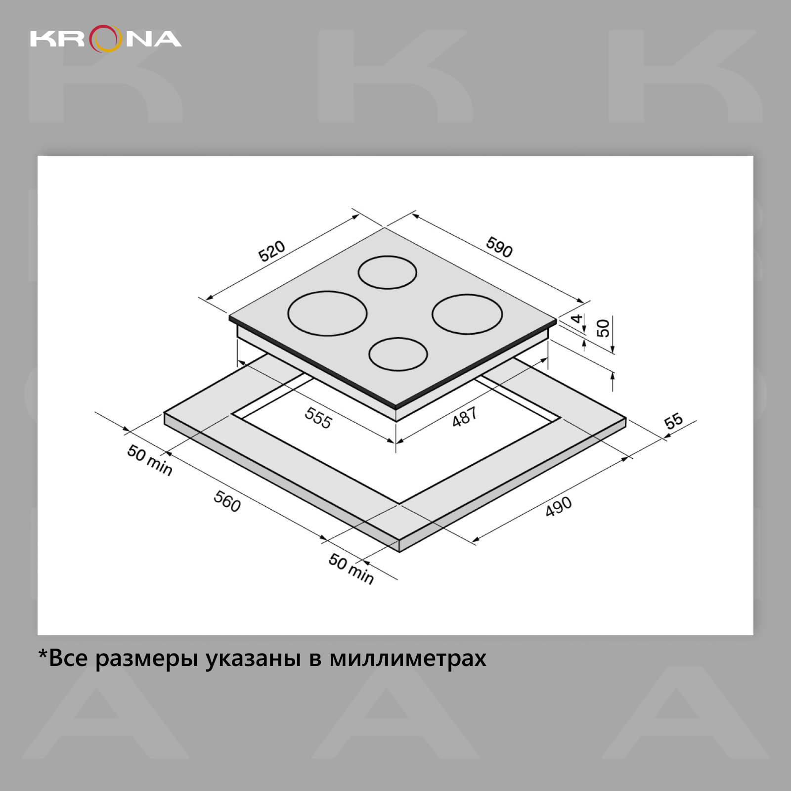 Электрическая варочная панель 60 см KRONA EDEL 60 BL TK интересное: