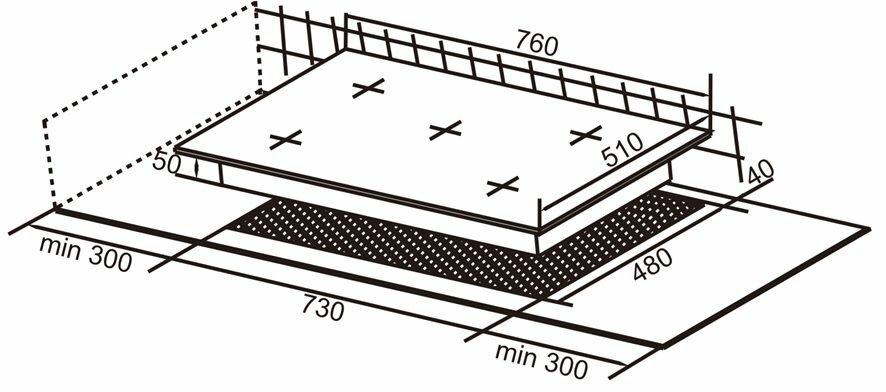 | Размеры, мм | Размеры варочной поверхности (В х Ш х Г), мм: 58 х 760 х 510; |