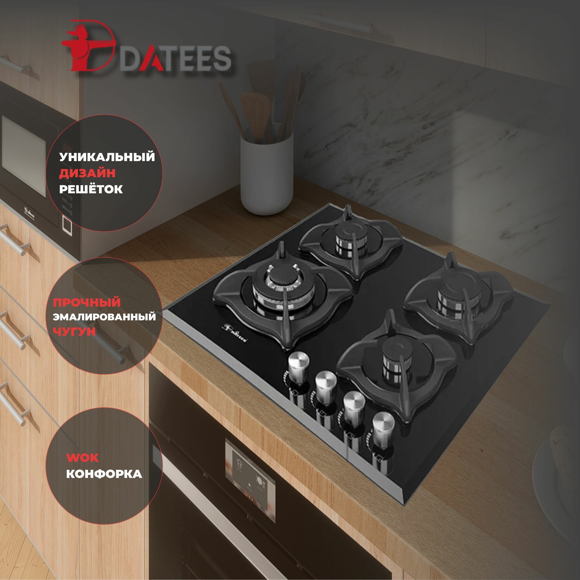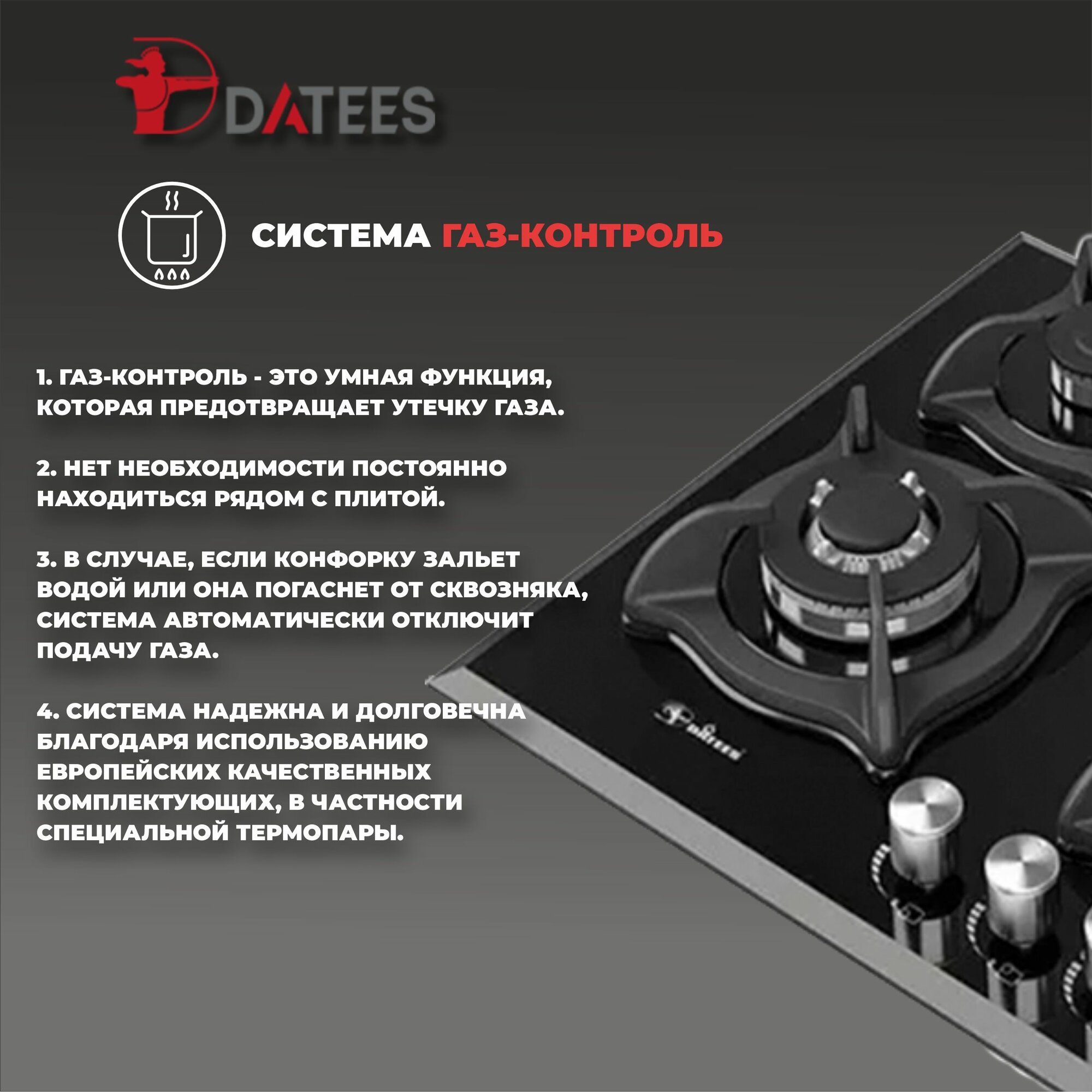 Газовая варочная панель Datees DG-402, 60см, черная, закаленное стекло интересное: