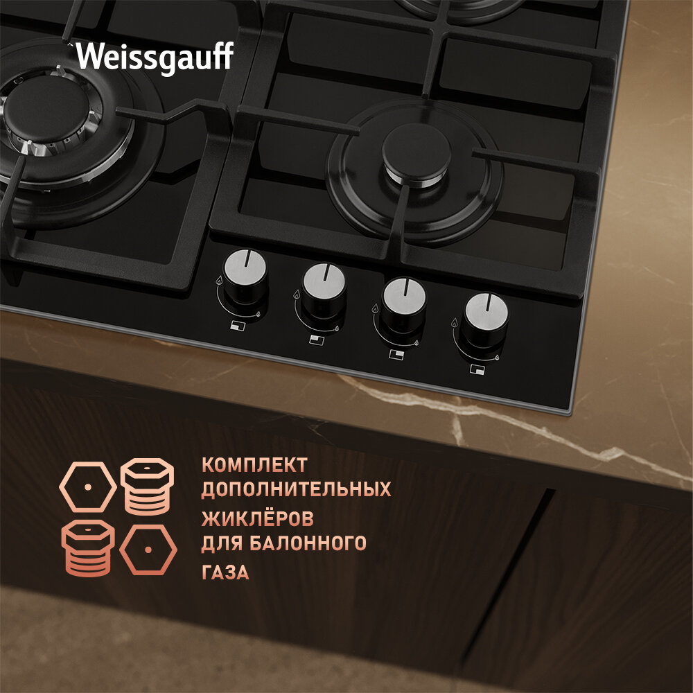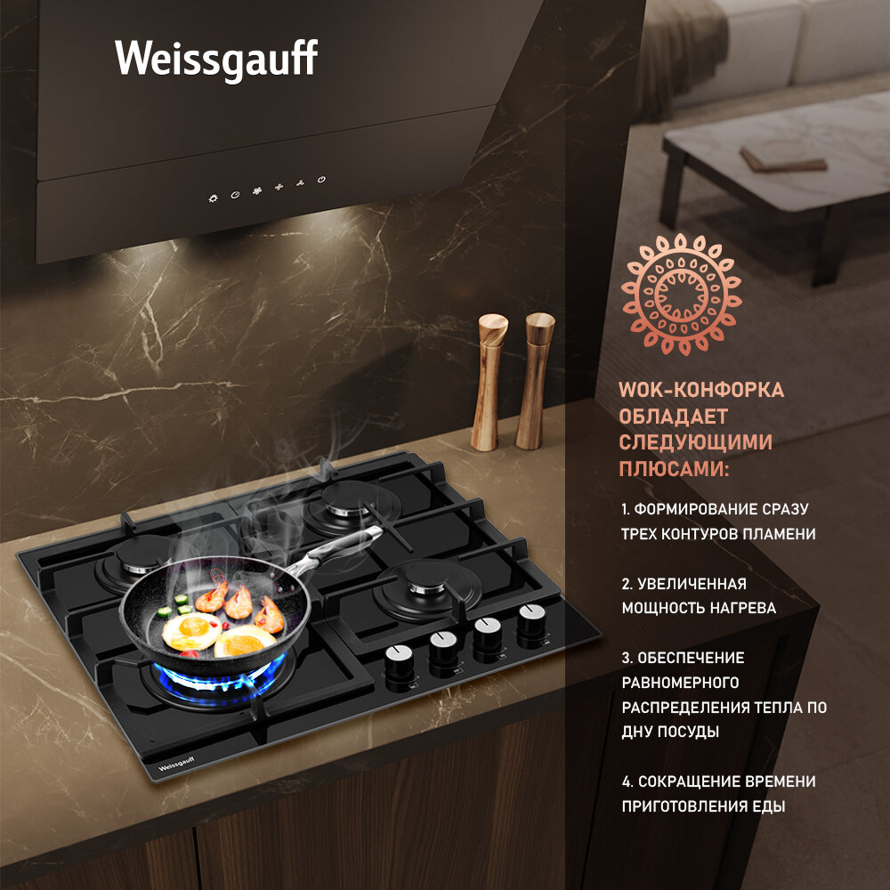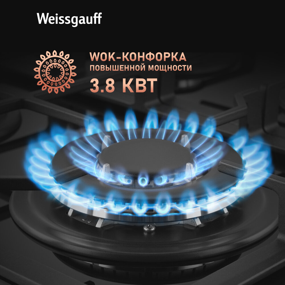 Варочная панель Weissgauff HGG 641 BGL, газ контроль, автоматический электроподжиг, решетки из чугуна, WOK-конфорка интересное: