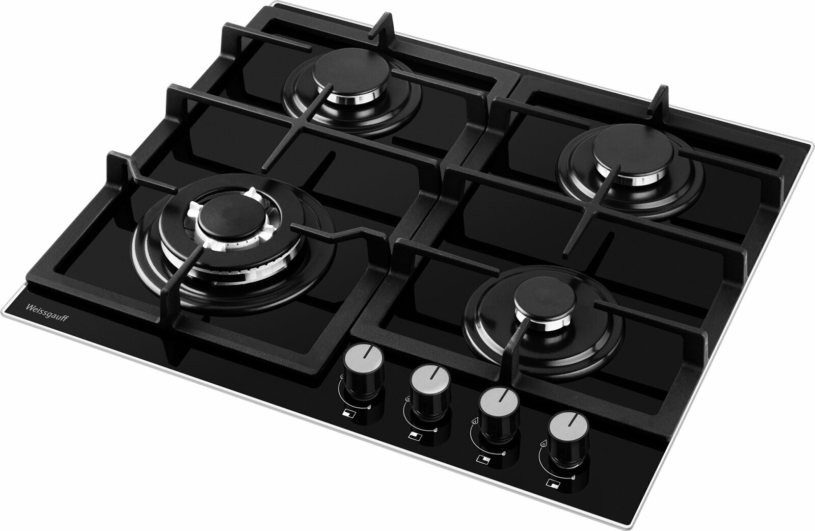 Купить Варочная панель Weissgauff HGG 641 BGL, газ контроль, автоматический электроподжиг, решетки из чугуна, WOK-конфорка