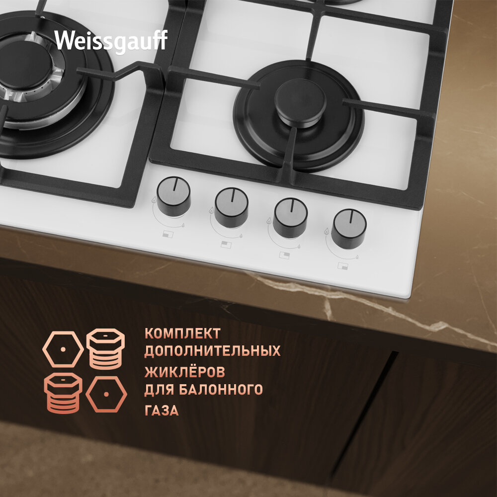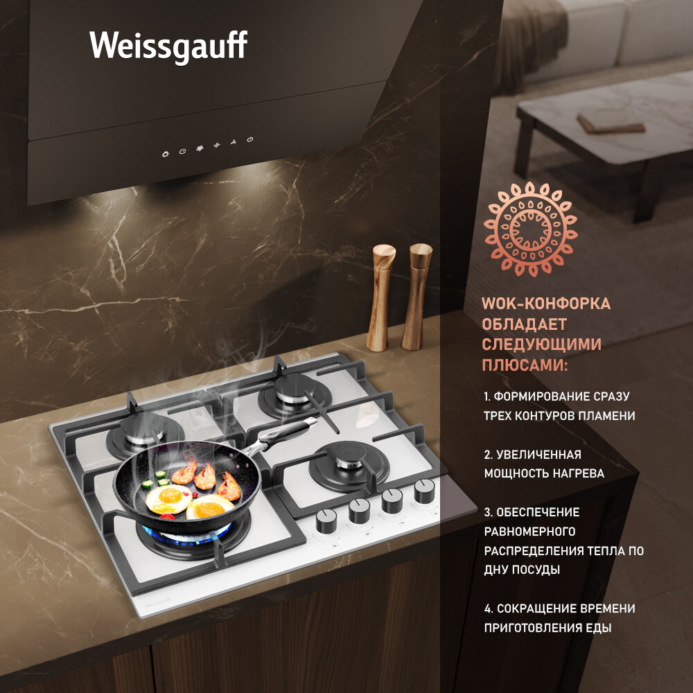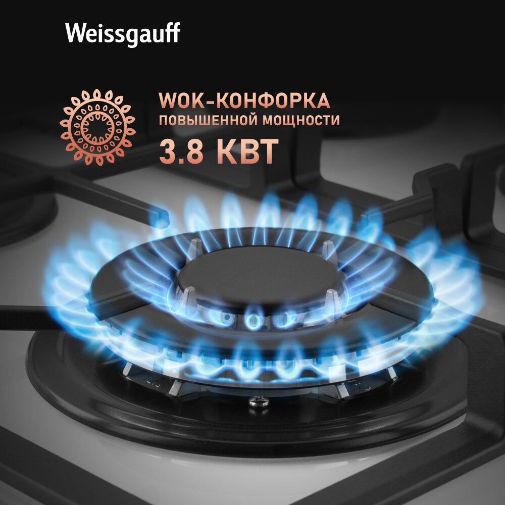 Варочная панель Weissgauff HGG 641 WGL, газ контроль, автоматический электроподжиг, решетки из чугуна, WOK-конфорка интересное: