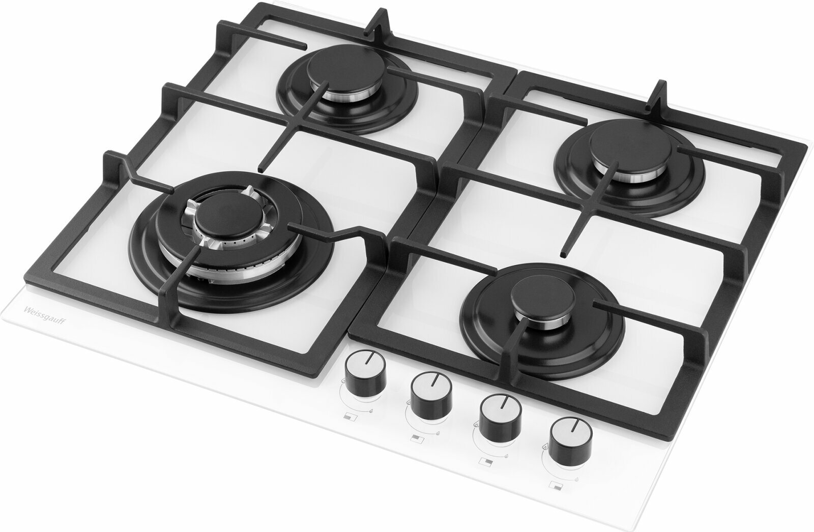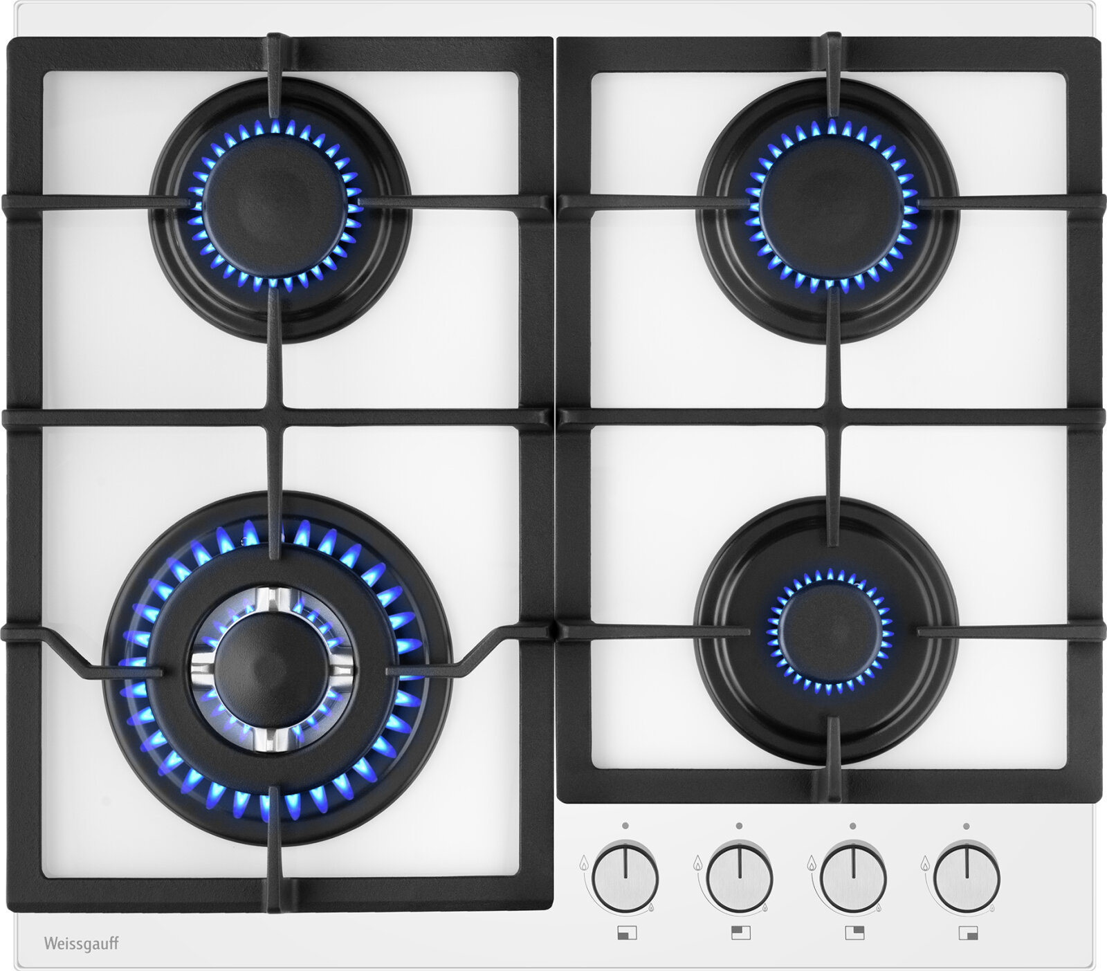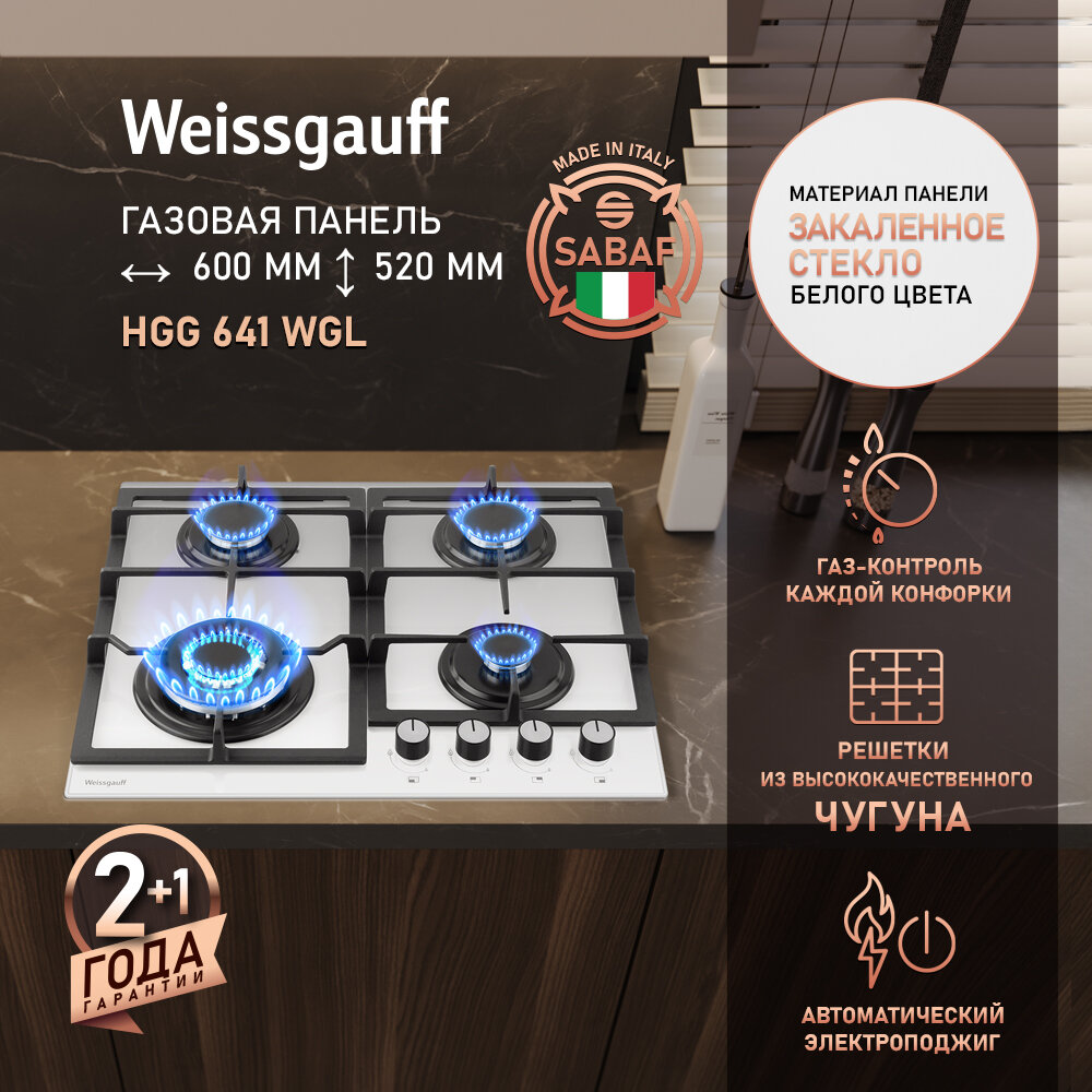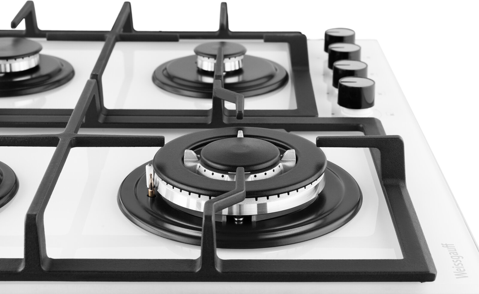 Купить Варочная панель Weissgauff HGG 641 WGL, газ контроль, автоматический электроподжиг, решетки из чугуна, WOK-конфорка