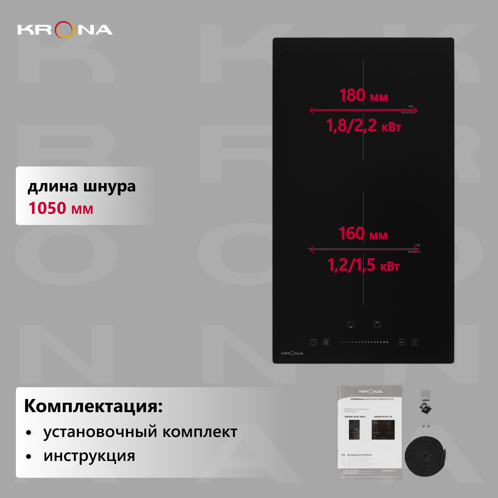 Купить Индукционная варочная панель 30 см KRONA ARGON 30 BL 2BTS