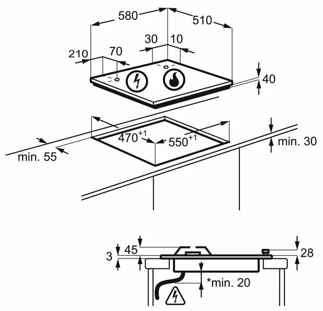 | Ширина для встраивания | 55 см |