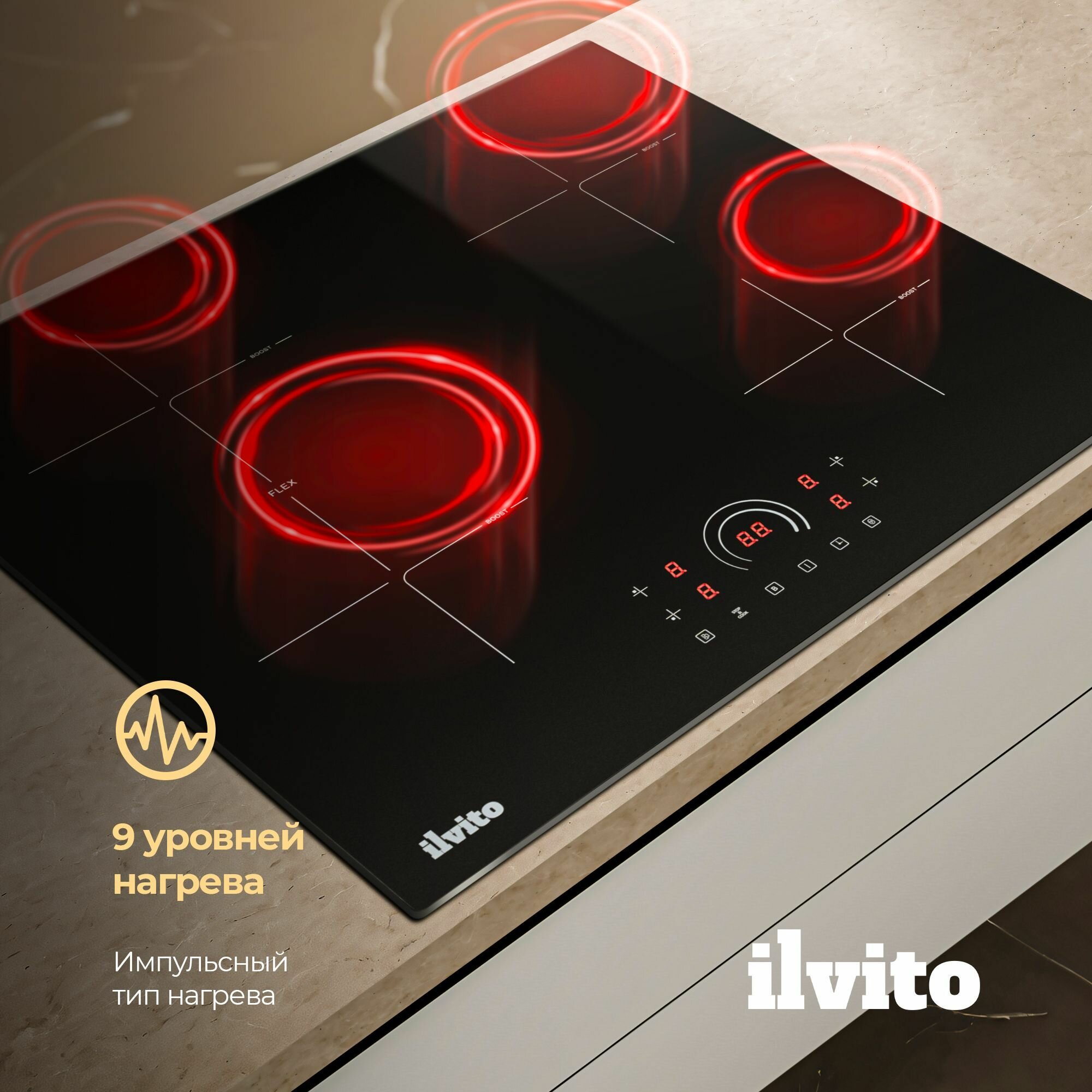 Индукционная варочная поверхность ILVITO IPI ACORO 610 H, 60 см, 9 режимов нагрева, Функция Booster