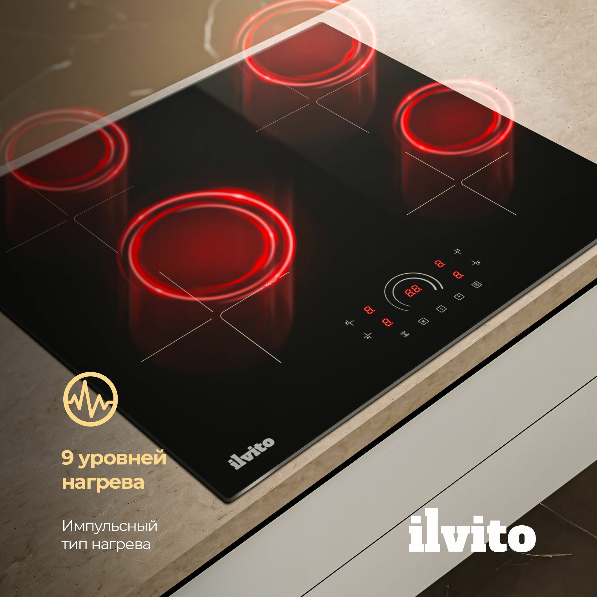 Индукционная варочная поверхность ILVITO IPI ACORO 600 T, 60 см, 9 режимов нагрева