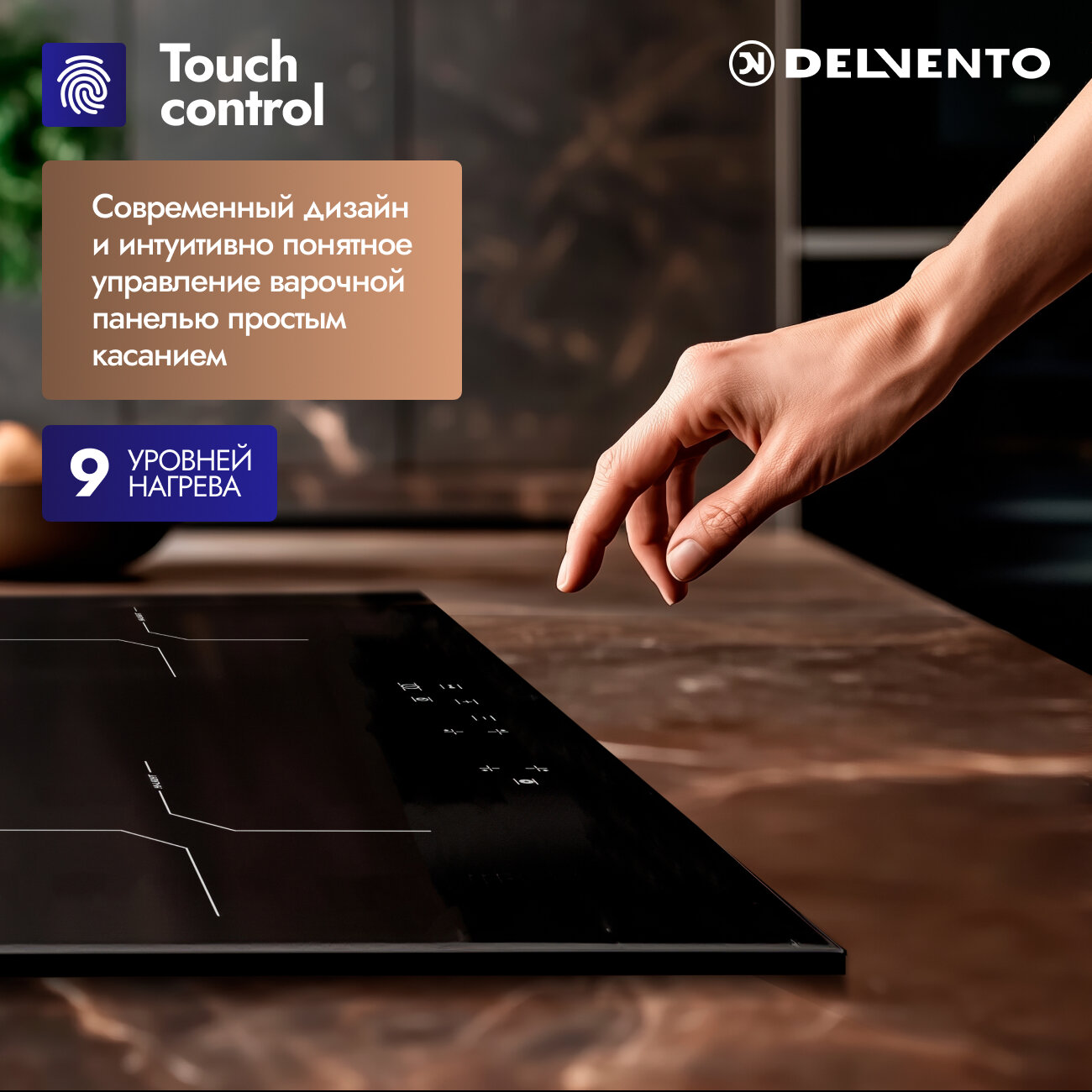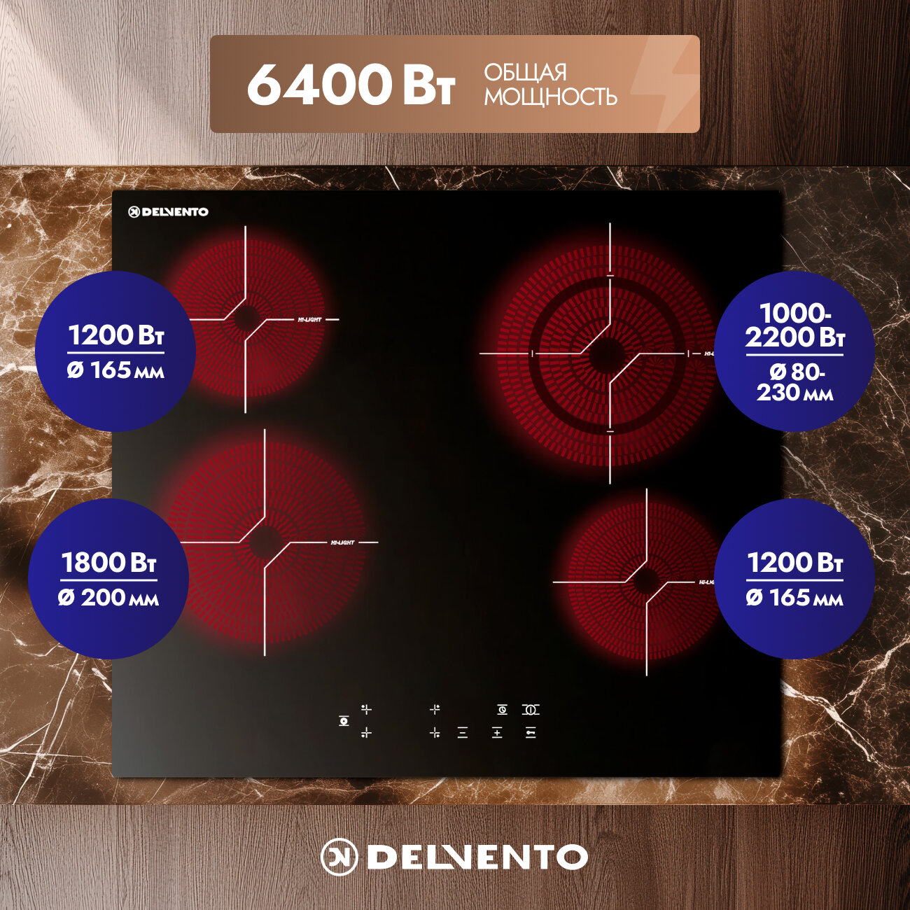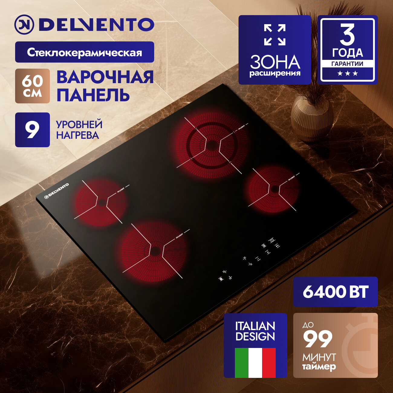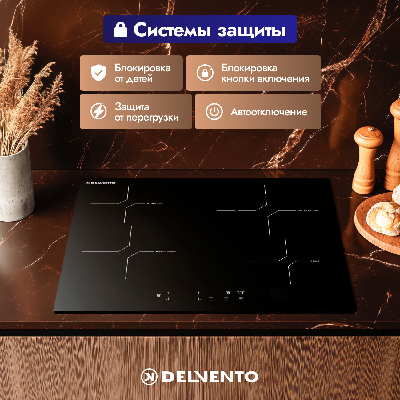 Встраиваемая электрическая варочная панель 60см DELVENTO V60D24S121 черная с 9 уровнями мощности 4 конфорки с защитой от детей, 3 года гарантии интересное: