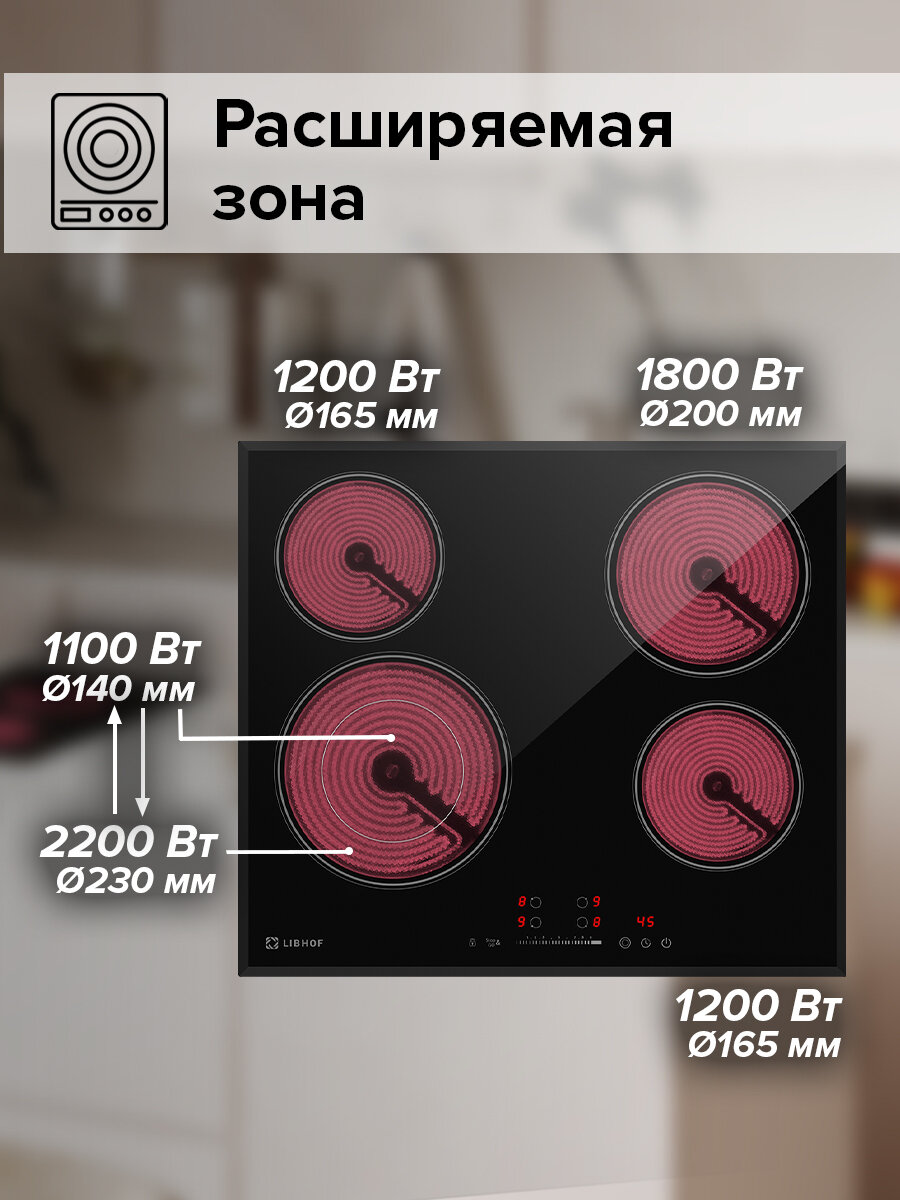 Варочная панель электрическая Libhof PH-64604C / 4 конфорки интересное:
