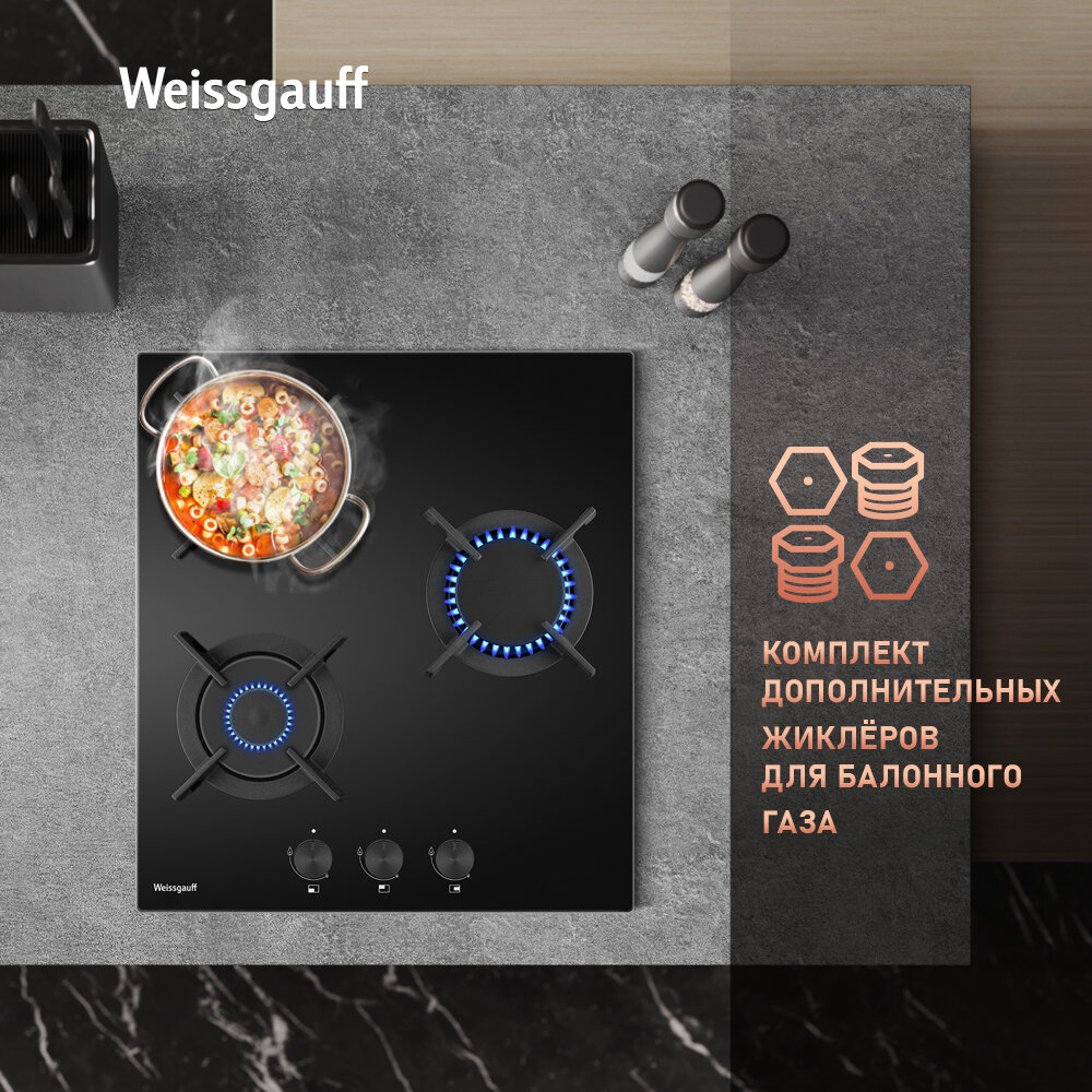 Купить Варочная панель Weissgauff HG 453 BGV, Рукоятки Hi-Tech, Автоматический электроподжиг