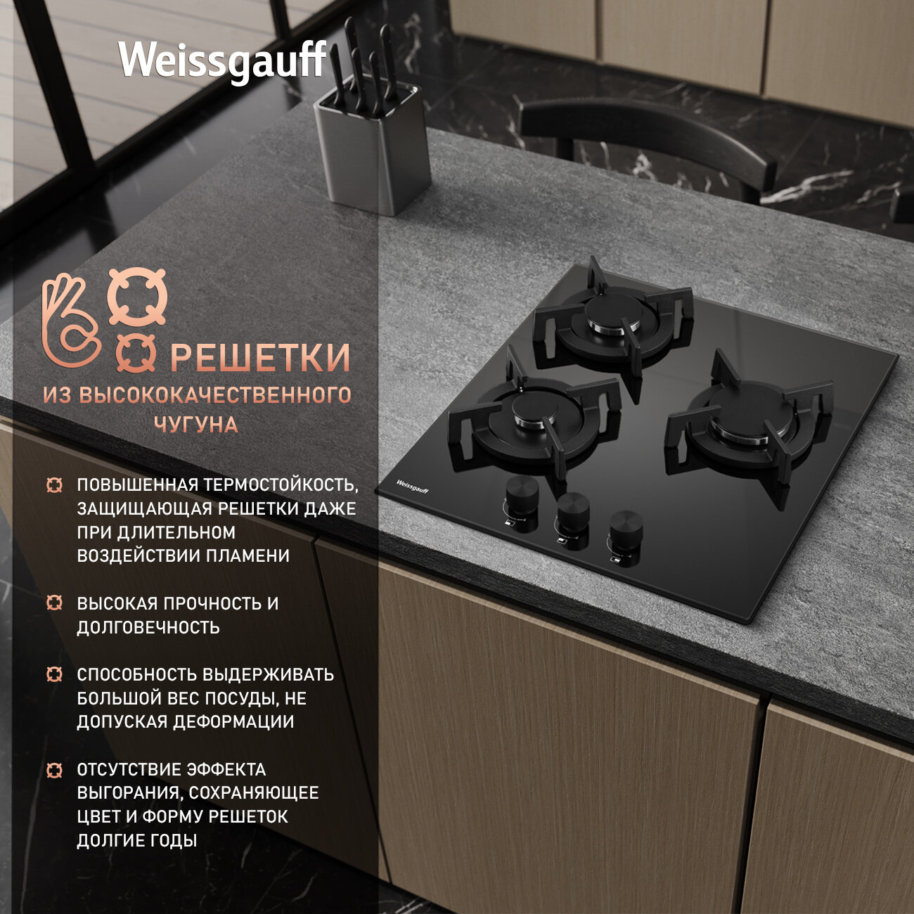 Варочная панель Weissgauff HG 453 WGV, Рукоятки Hi-Tech, Автоматический электроподжиг