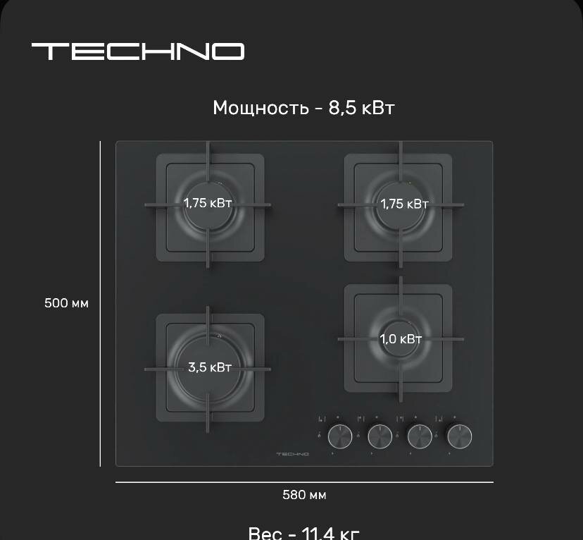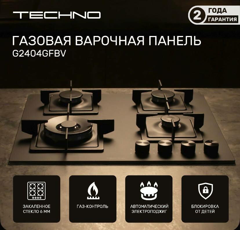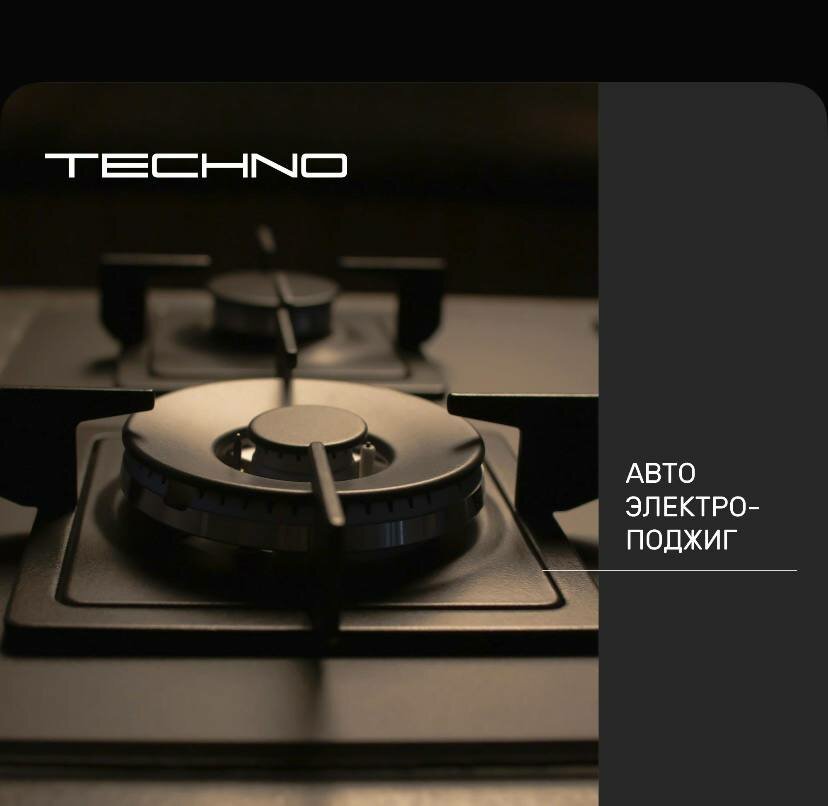 Варочная панель газовая TECHNO HG2404GFBV, черная матовая интересное: