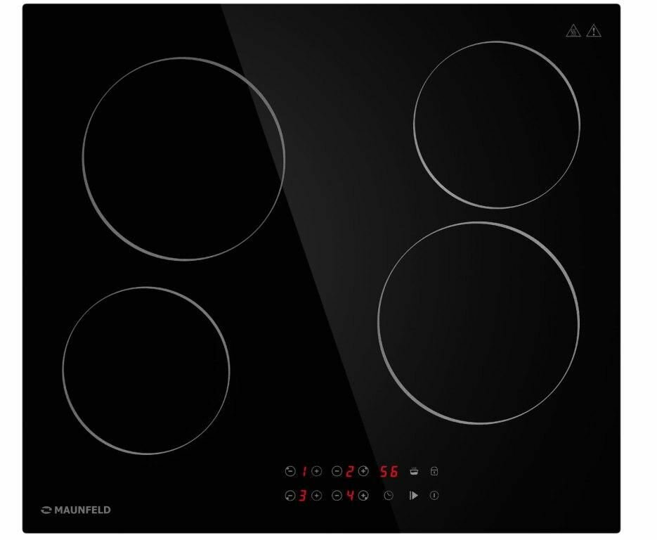 Электрическая варочная панель Maunfeld CVCE594BK, 4 конфорки, стеклокерамическая поверхность, чёрная интересное: