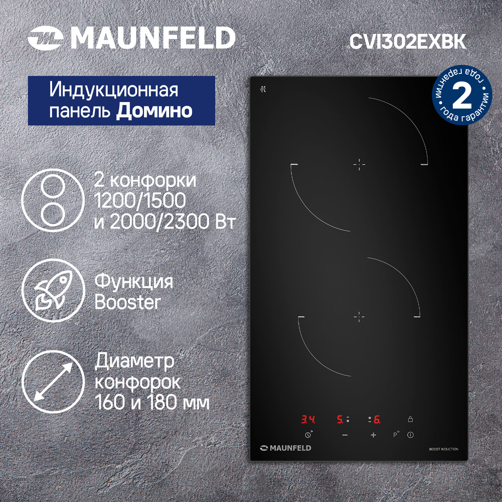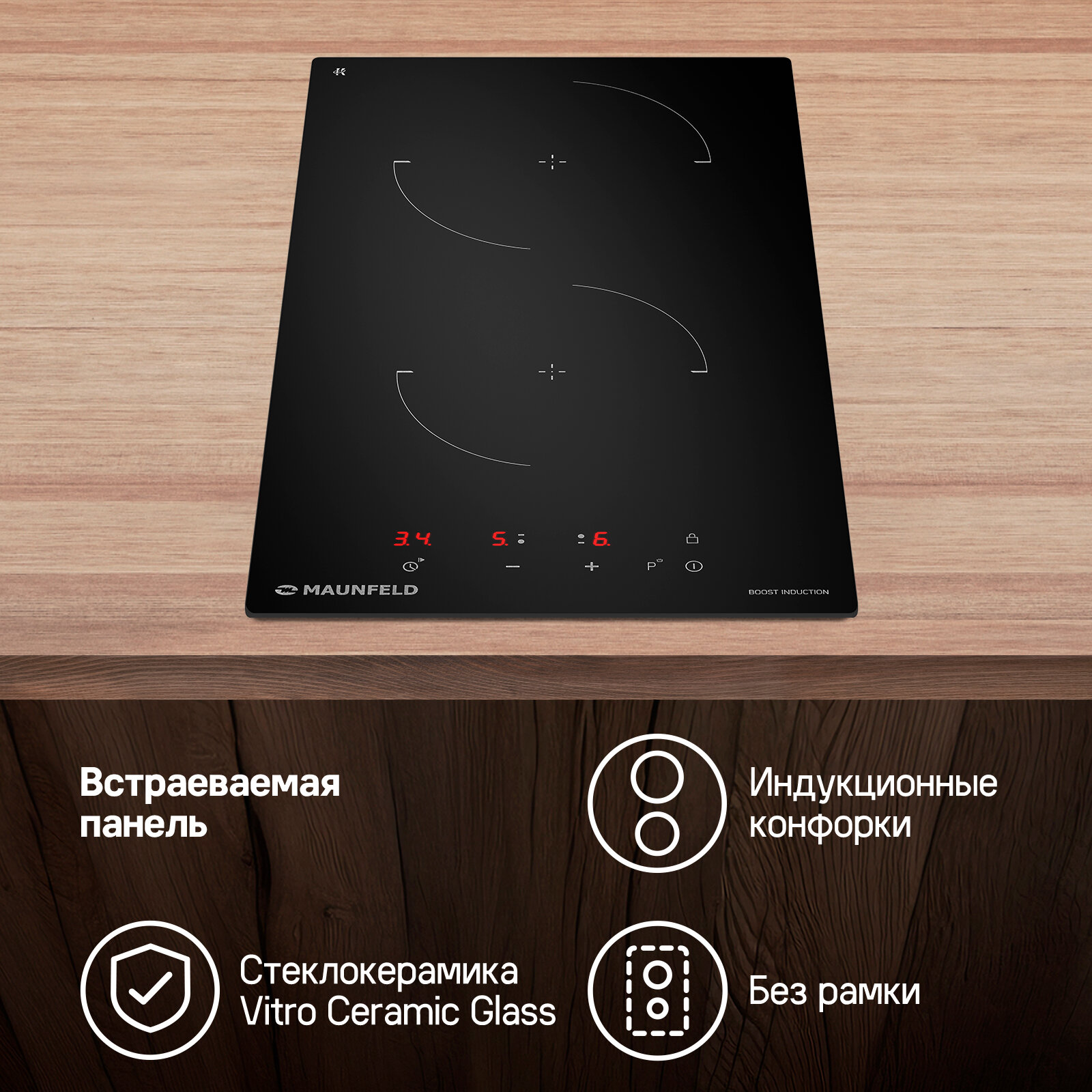 Индукционная варочная панель MAUNFELD CVI302EXBK, 2 конфорки, мощность 3,5 кВт, таймер, бустер интересное: