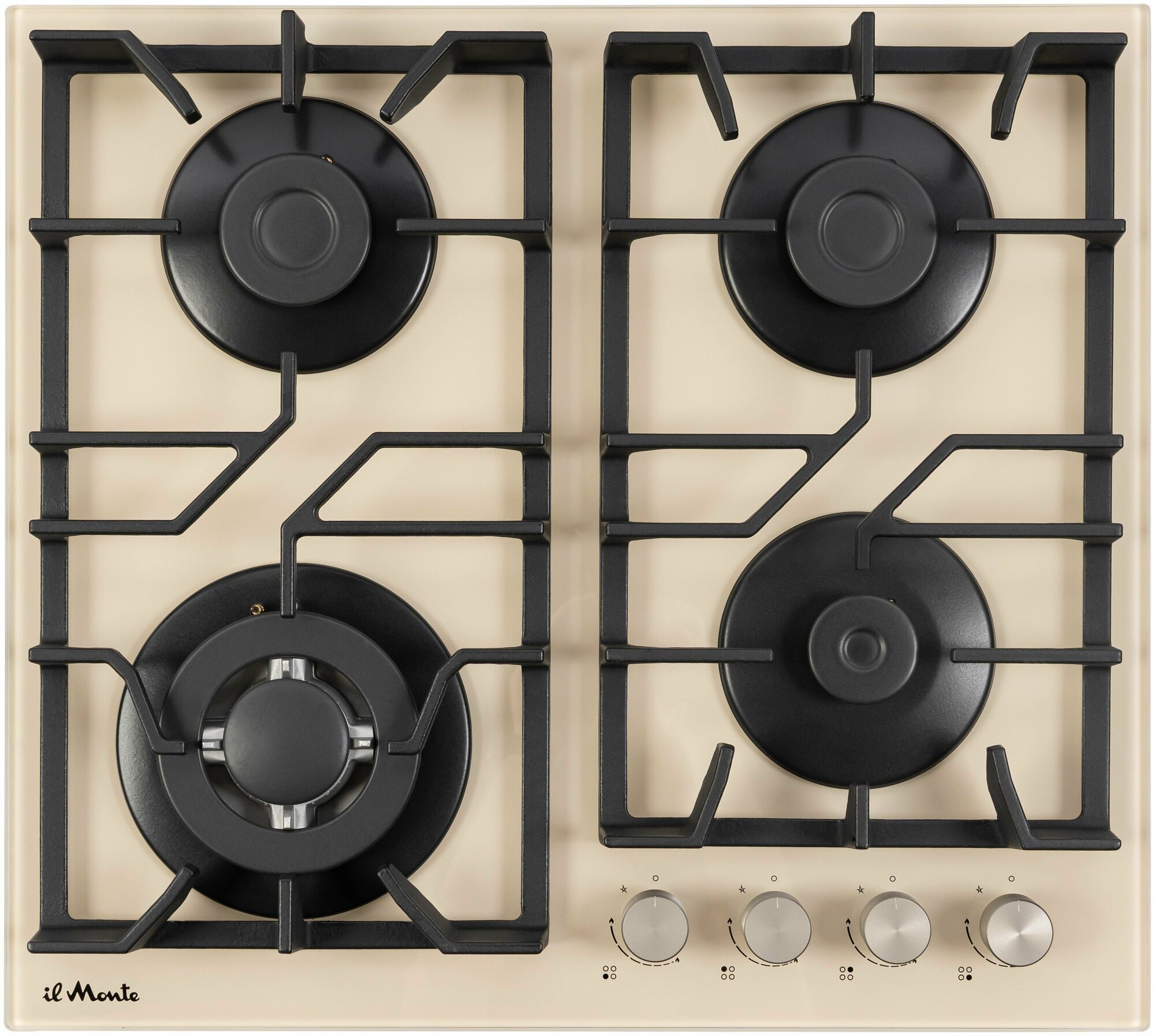 Купить Варочная панель газовая, Закаленное стекло, 60 см, Газ-контроль, Турбо-конфорка WOK, Автоподжиг, Чугунные решетки, il Monte BH-674G